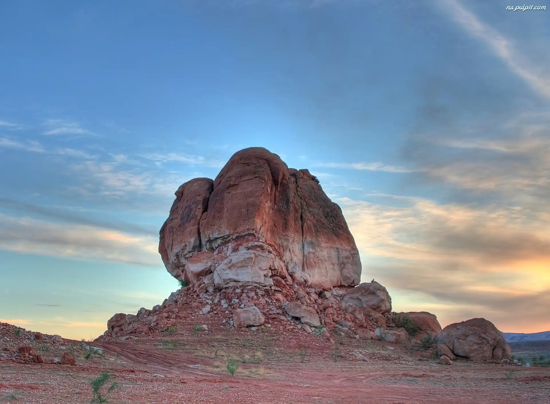 Skały, Pustynia, Chmury