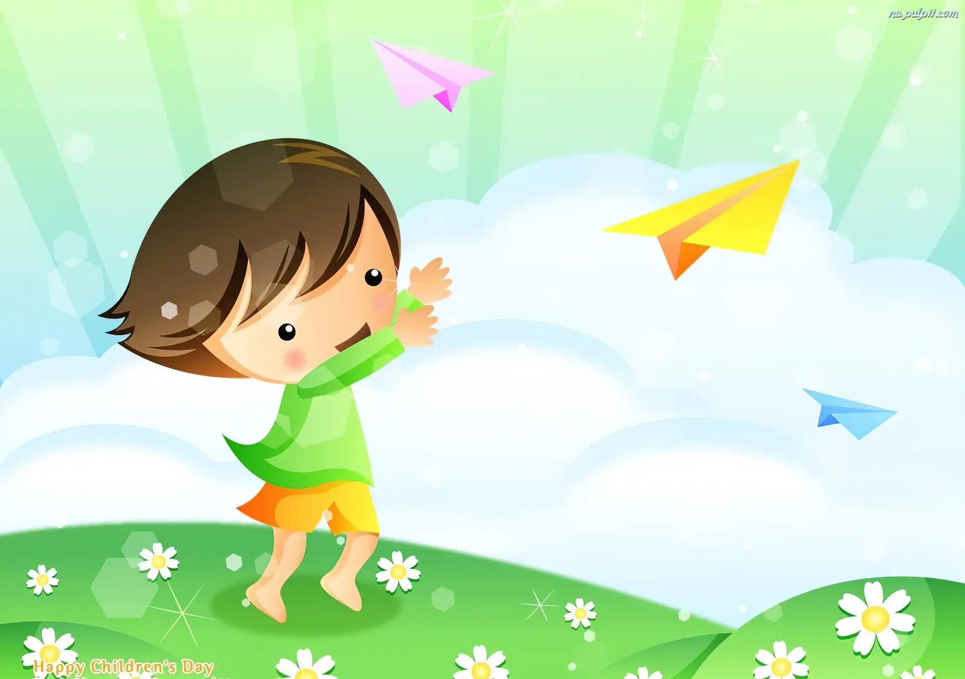 Radość, Papierowe, Łąka, Dziecko, Samoloty Na Pulpit