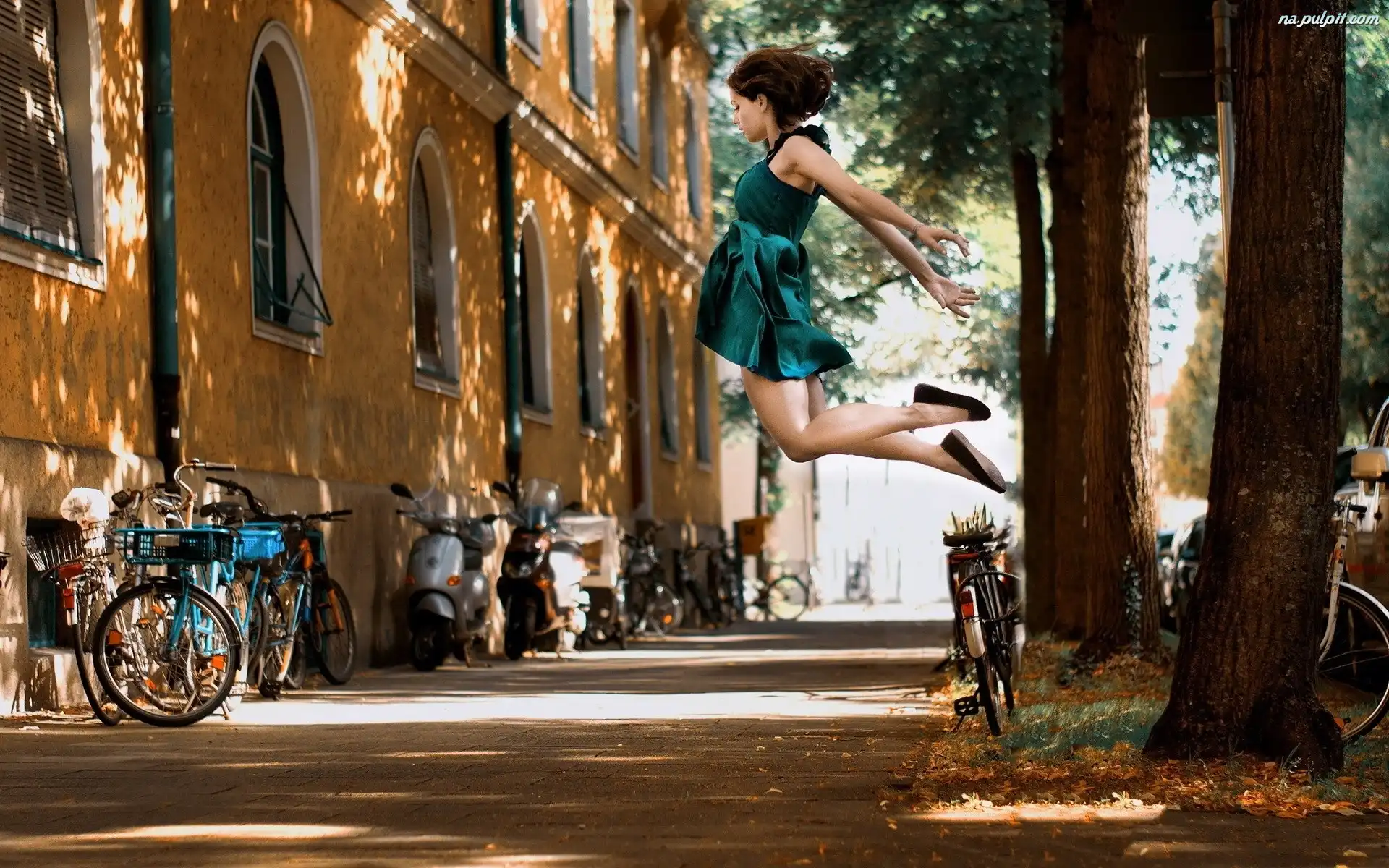 Radość, Rower, Motocykl, Ulica, Dziewczyna, Drzewa Na Pulpit