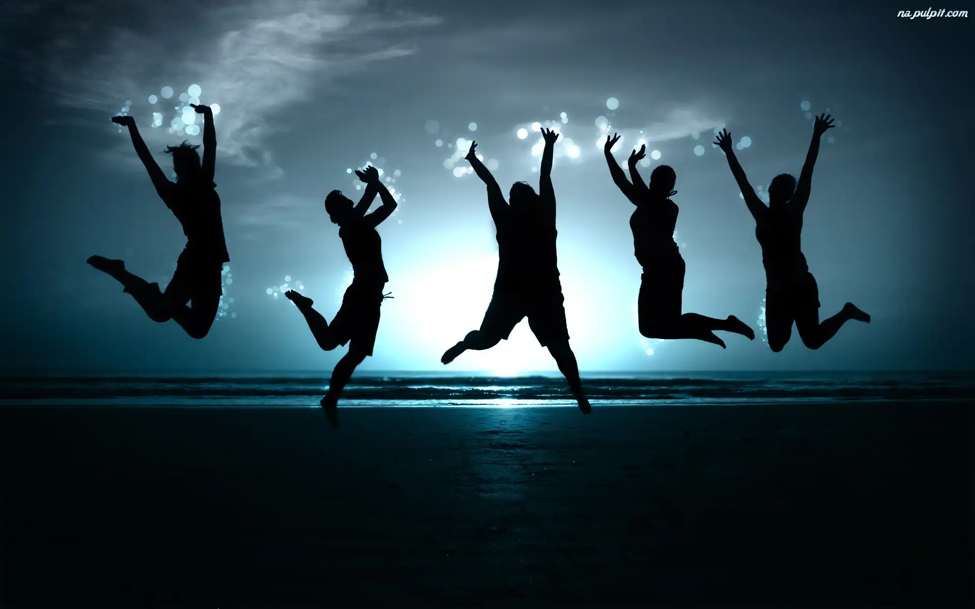 Radość, Wieczór, Plaża, Ludzie Na Pulpit