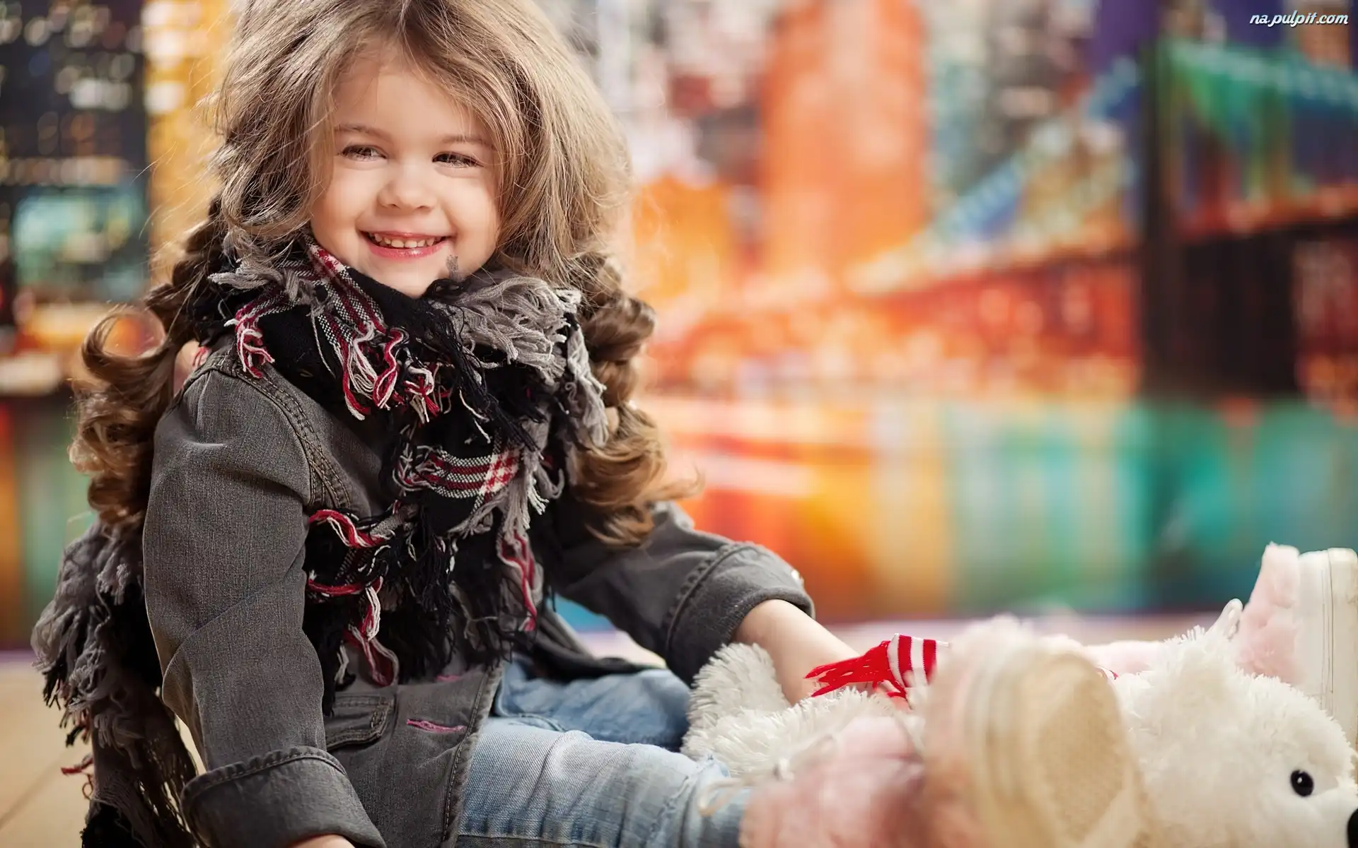 Radosna, Pluszowy, Misio, Dziewczynka, Ładna, Blondynka Na Pulpit