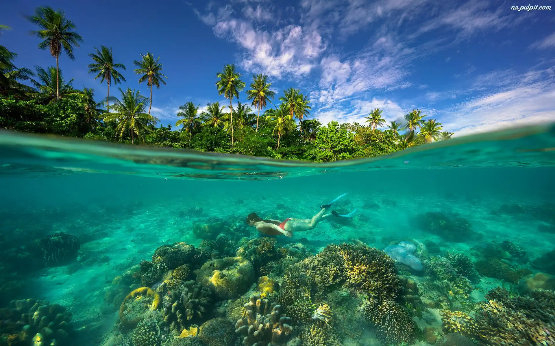 Nurek, Morze, Palmy, Rafa koralowa, Wyspa, Koralowce Na Pulpit