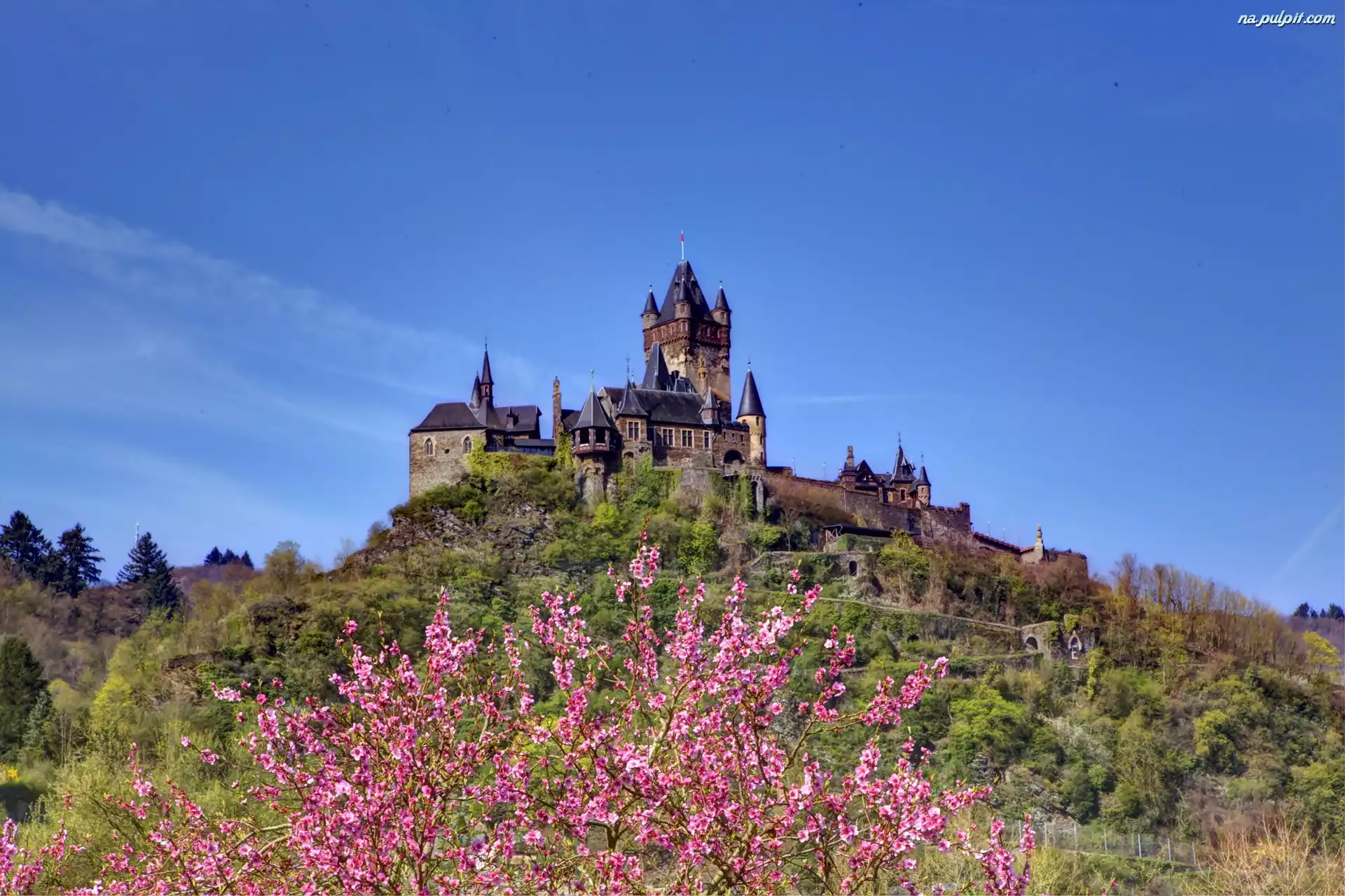 Reichsburg, Kwitnące, Drzewo, Wzgórze, Zamek, Wiosna Na Pulpit