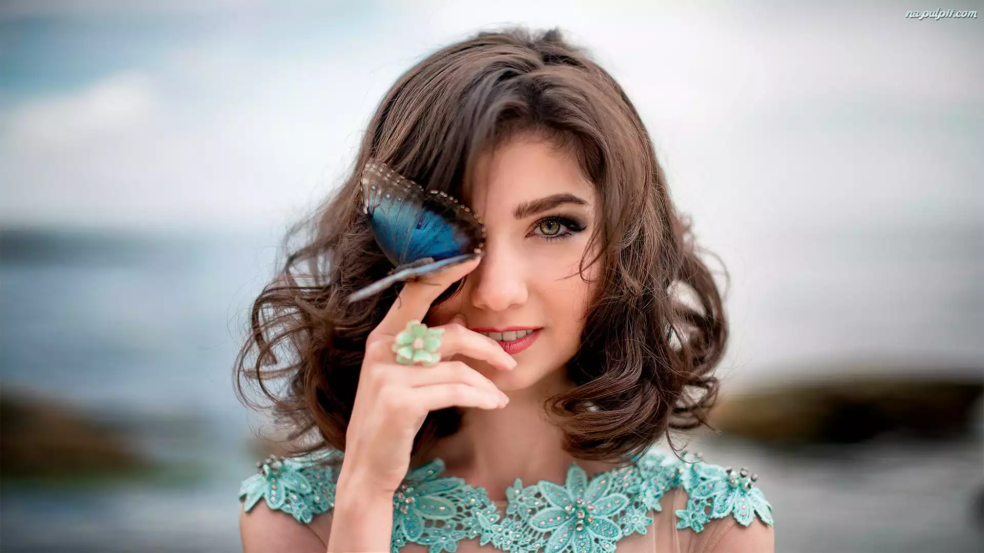 Ręka, Motyl, Niebieski, Dziewczyna, Twarz Na Pulpit
