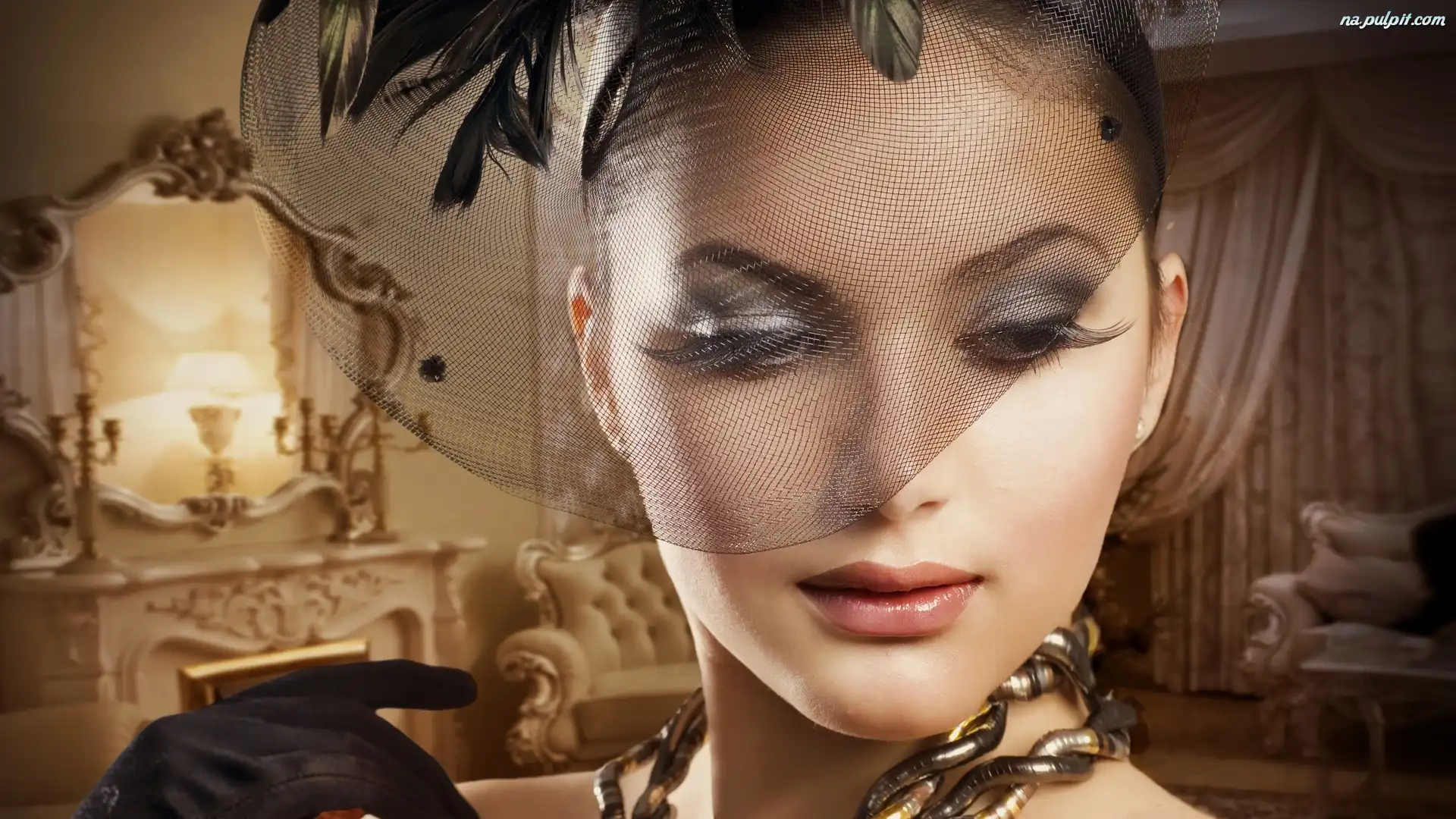 Rękawiczka, Woalka, Makijaż, Kobieta, Dłoń Na Pulpit