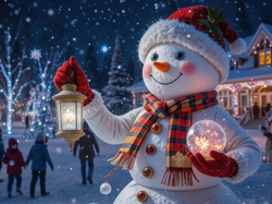 Lampion, Szalik, Kula, Bałwanek, Zima, Dom, Czapka, Rękawiczki