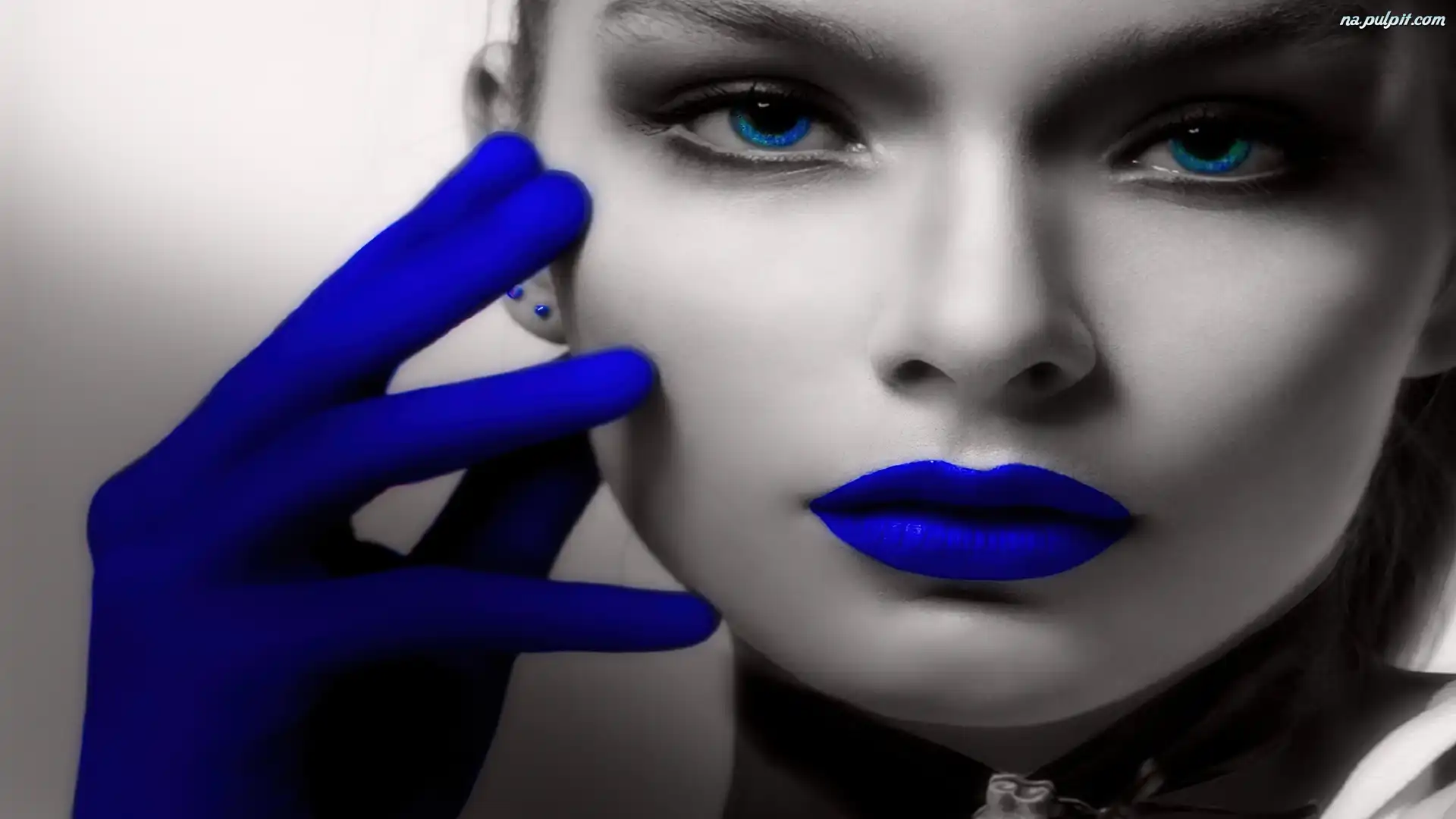 Rękawiczki, Błękitne, Kobiety, Twarz, Usta Na Pulpit