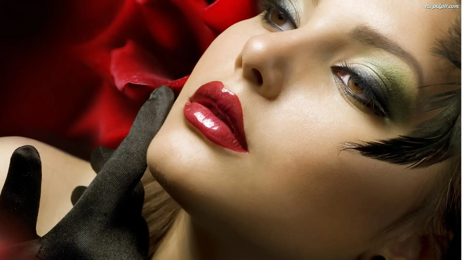 Rękawiczki, Czerwone, Makijaż, Twarz, Usta Na Pulpit