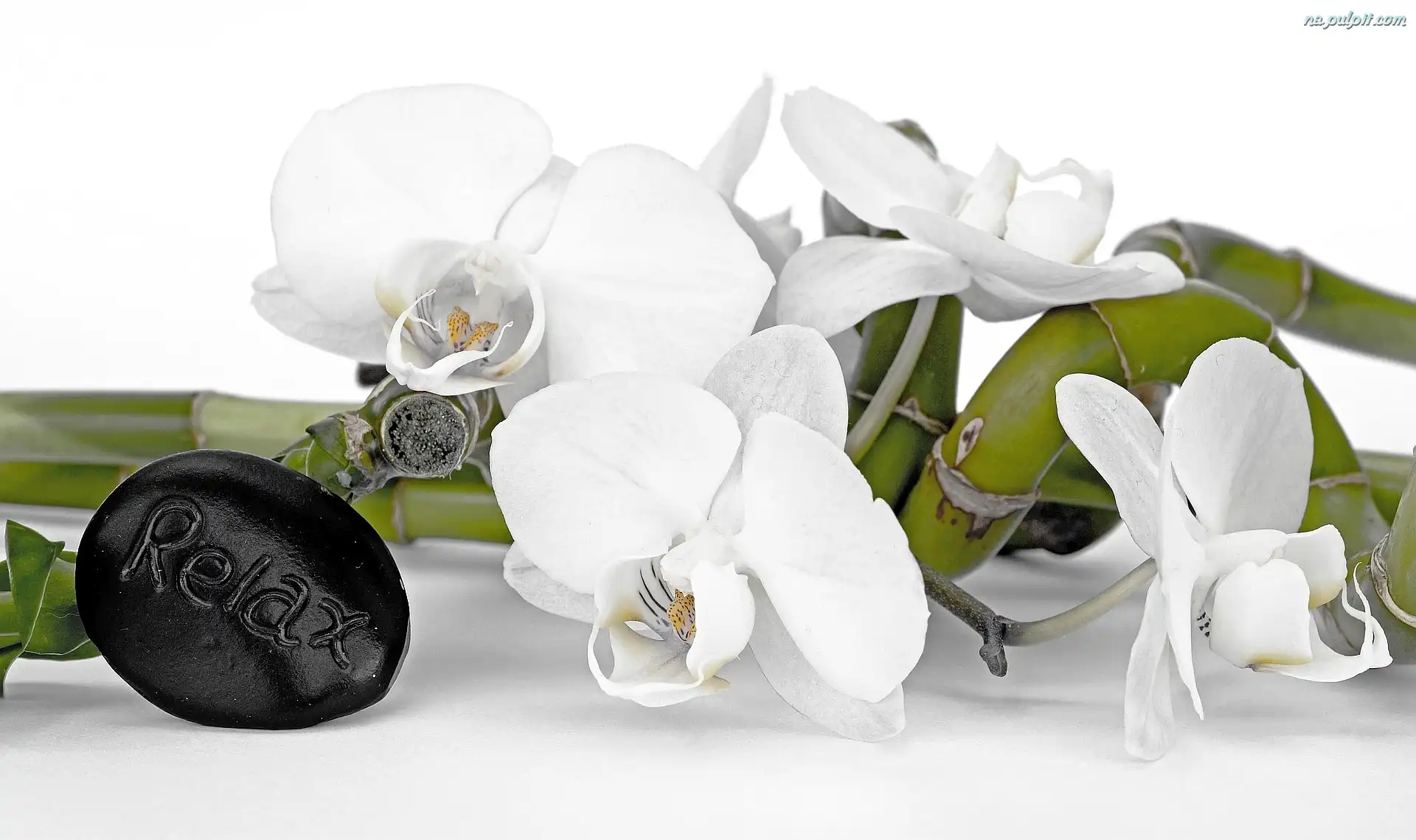 Relaks, Kamień, Bambus, Storczyki, Napis