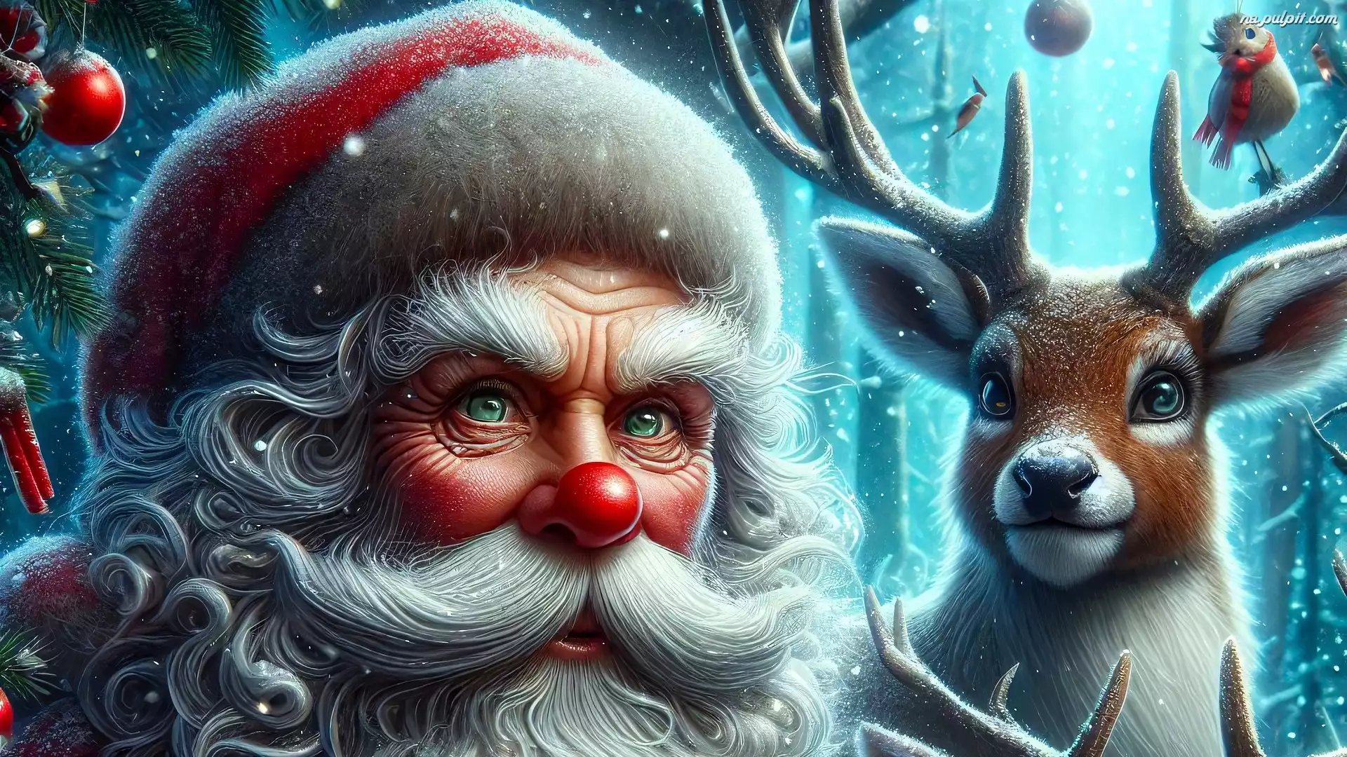 Grafika, Zima, Mikołaj, Renifer Na Pulpit