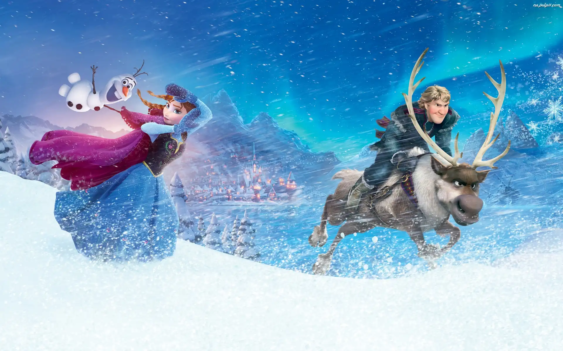 Kristoff, Kraina lodu, Frozen, Zima, Renifer Sven, Bałwan Olaf, Śnieg, Bajka, Anna Na Pulpit