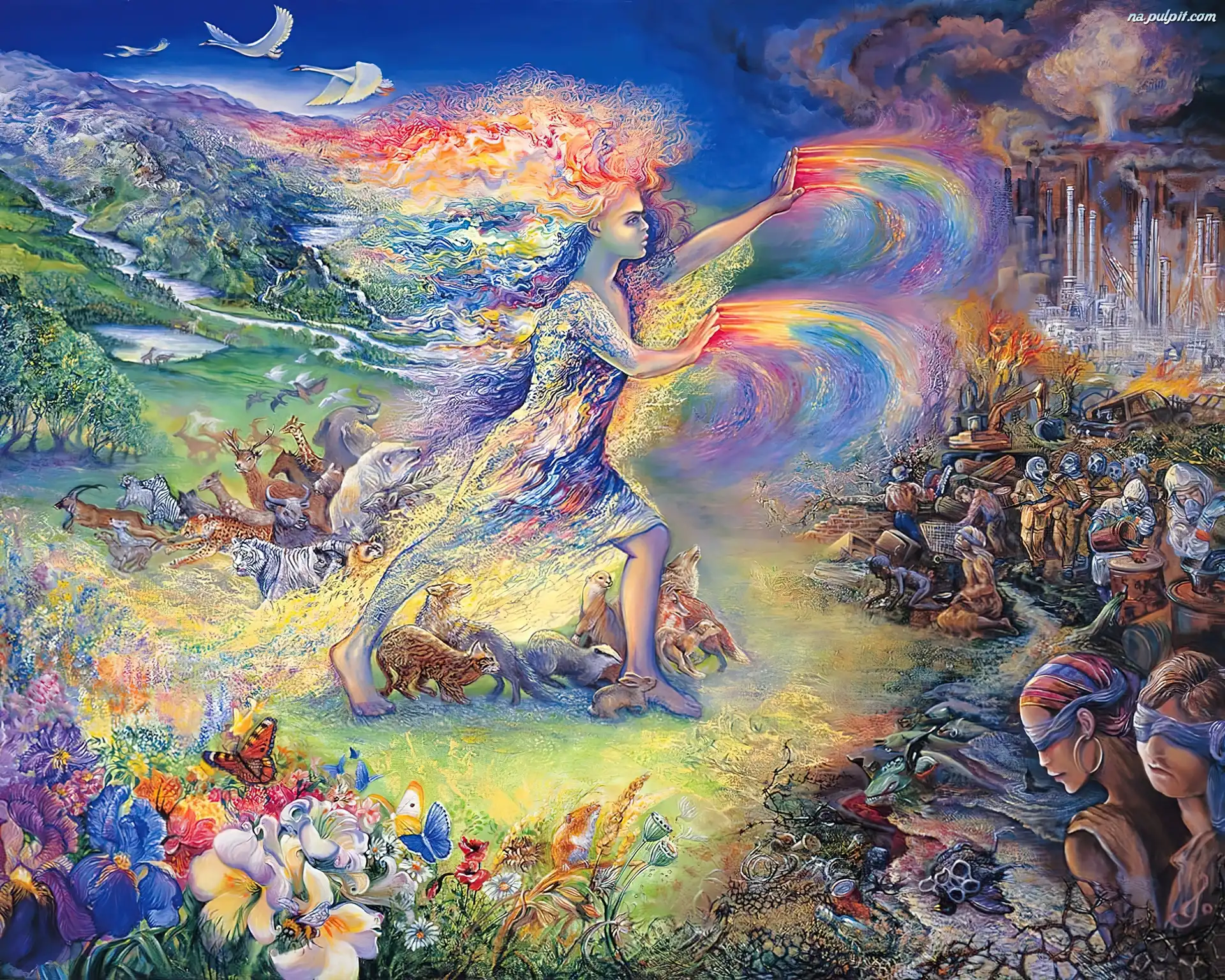 Wilki, Kobieta, Białe Dziewczynka, Aniołek Woda, Czerwona, Kobieta, Sukienka Kwiaty, Dzieci, Łąka Kapelusze, Trawa, Dziewczynki, Leonid Afremov Czerwony, Feniks Skały, Ziemska, Kula, Woda Wojciech Siudmak, Idylla Luis Royo, Indianie Bańki, Ogniste, Kobieta, Włosy Pustynia, Statek, Neosurrealizm, Skała Lodowa, Wróżka Hamak, Dwa, Misie Lew, Orzeł, Pół, Pół