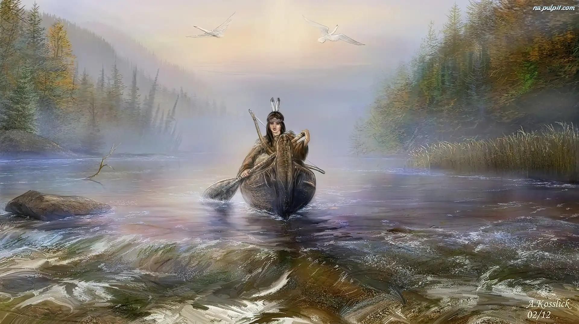 Reprodukcja Obrazu, Kajak, Indian, Rzeka Na Pulpit