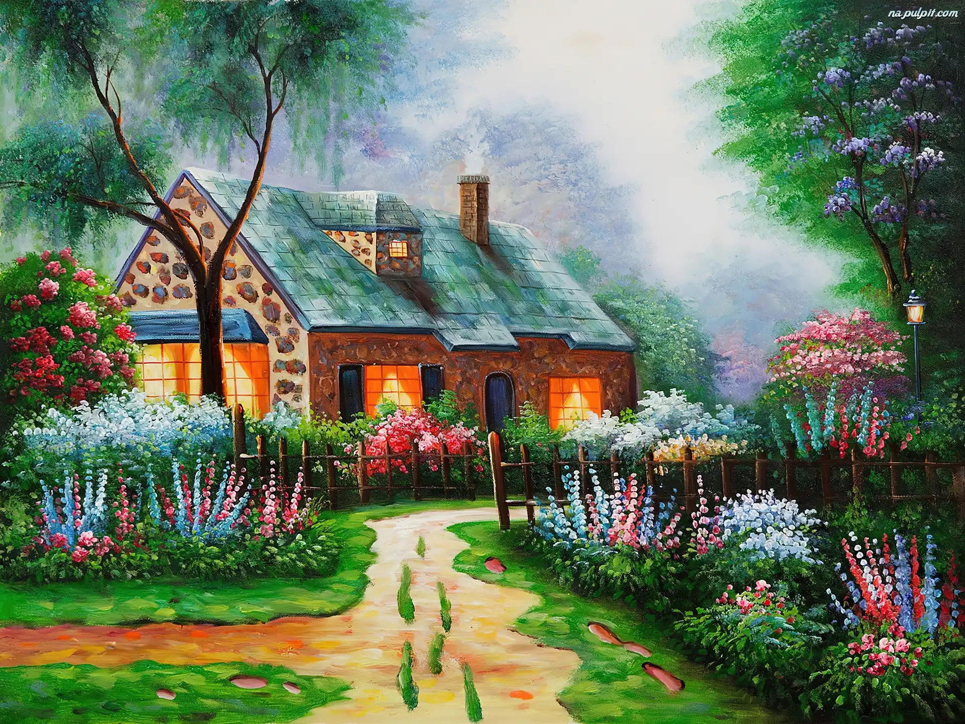Reprodukcje Obrazów, Kwiaty, Ogród, Dom, Alejka Na Pulpit