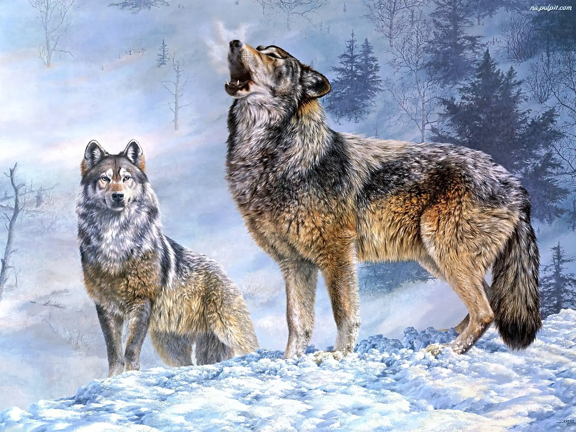 Reprodukcje Obrazów, Wilki, Dwa, Zima Na Pulpit