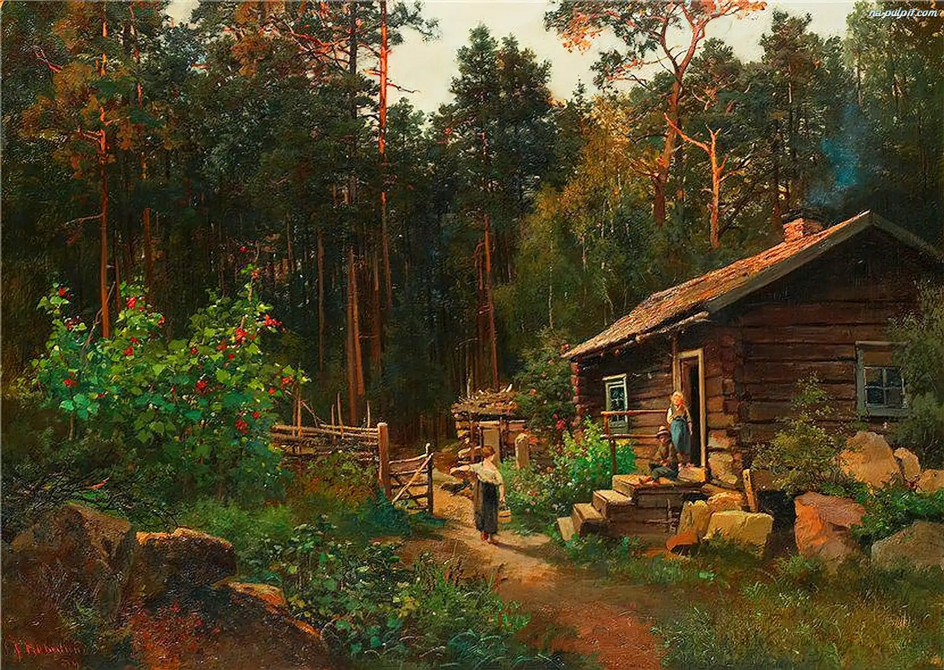 Reprodukcje Obrazów, Kobiety, Las, Chata Na Pulpit