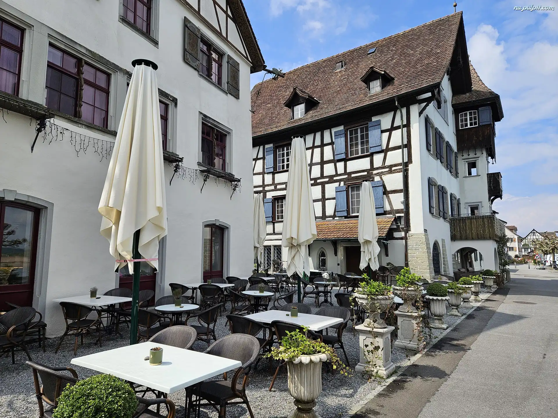 Parasole, Restauracja, Ulica, Domy, Stoliki Na Pulpit