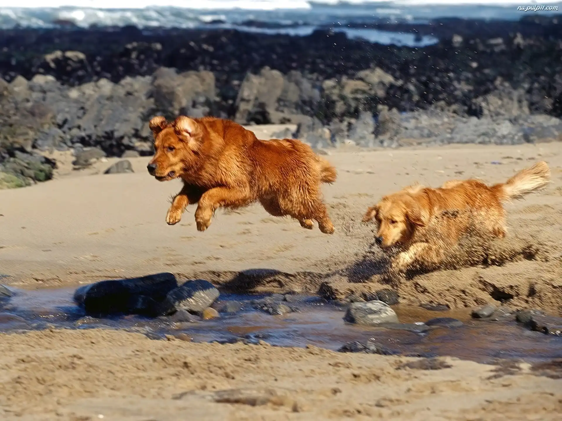skały, Retrievery z Nowej Szkocji, Dwa, woda Na Pulpit