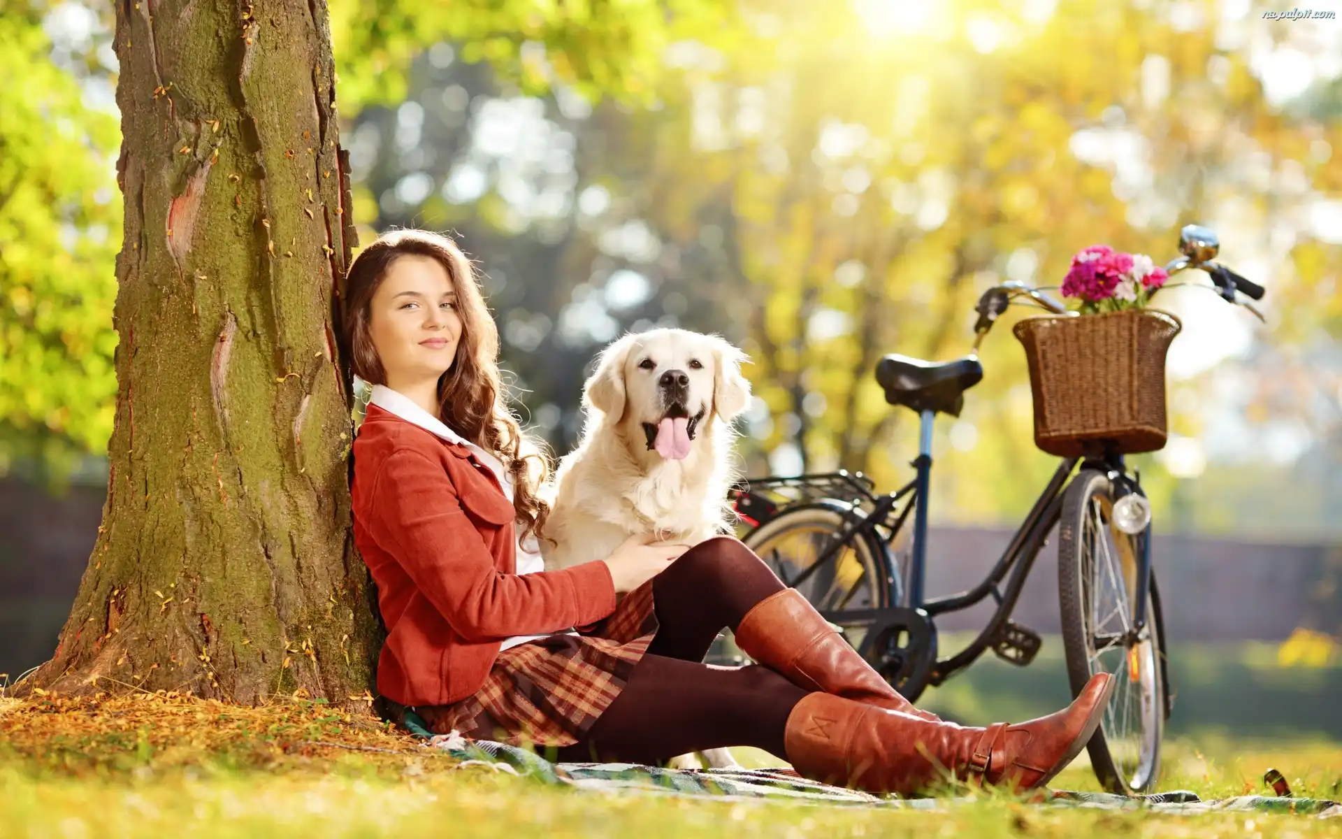 Retriewer, Pies, Kobieta, Golden Na Pulpit