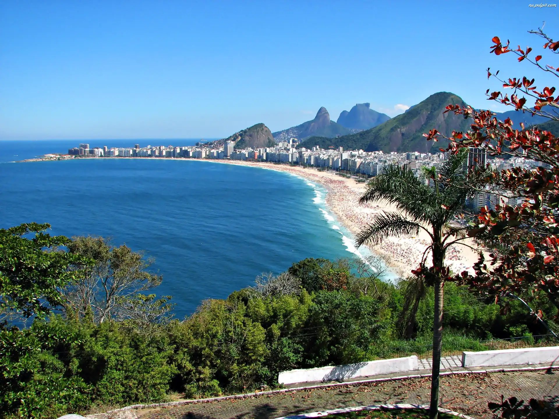 Rio De Janeiro, Morze, Plaża, Drzewa Na Pulpit