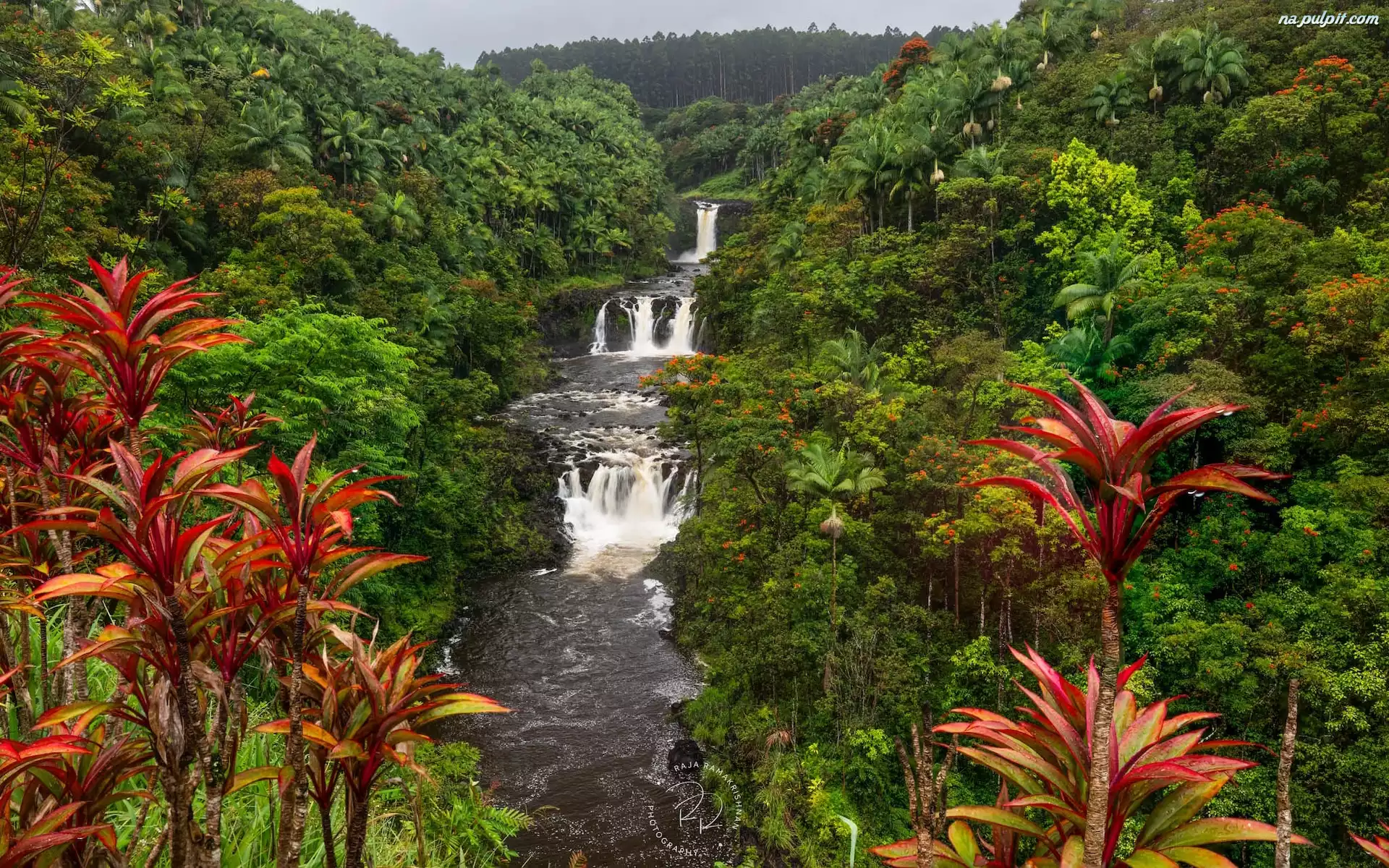 Roślinność, Wodospad, Drzewa, Stany Zjednoczone, Umauma River, Rzeka, Hawaje, Umauma Falls Na Pulpit |