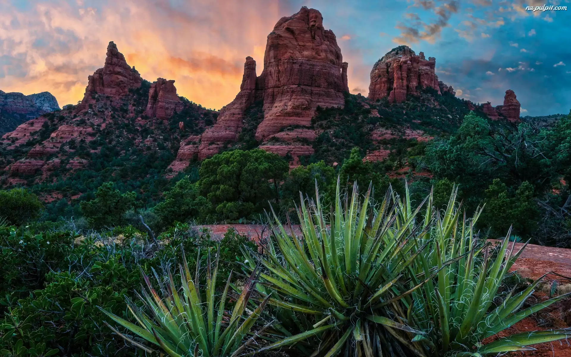 Juki, Sedona, Chmury, Arizona, Góry, Szczyty, Stany Zjednoczone, Red Rock, Skały, Drzewa Na Pulpit |
