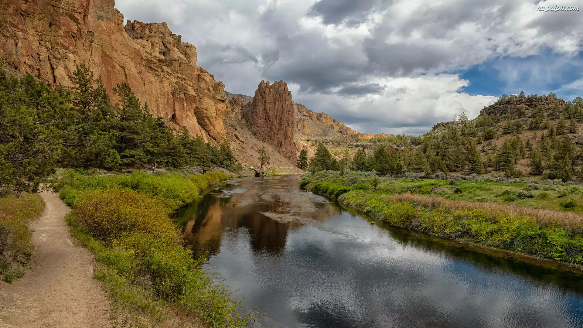 Skały, Smith Rock, Rzeka Crooked River, Smith Rock State Park, Stany Zjednoczone, Oregon, Góry, Drzewa Na Pulpit |