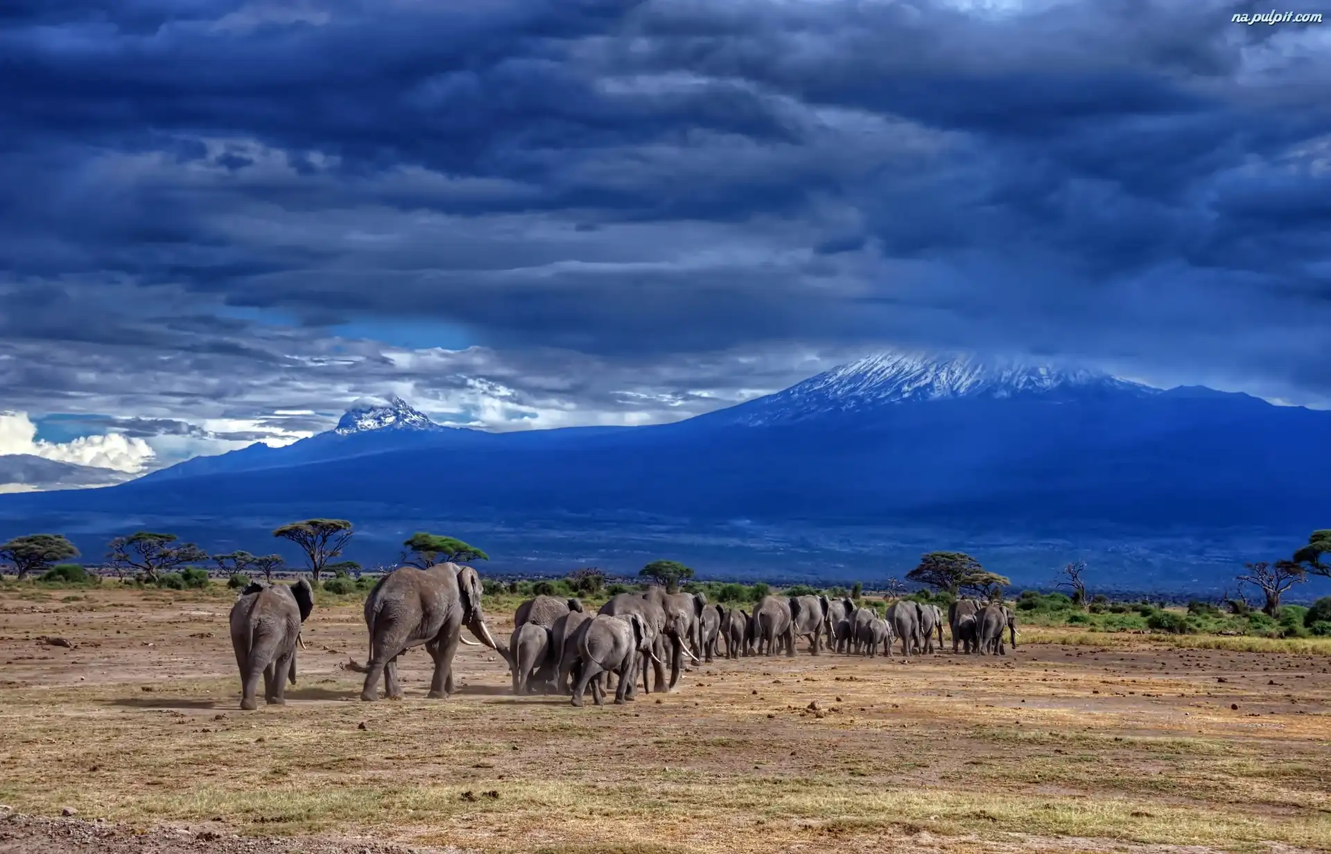 Słoni, Narodowy, Kilimandżaro, Góry, Tanzania, Afryka, Step, Park, Rodzina Na Pulpit