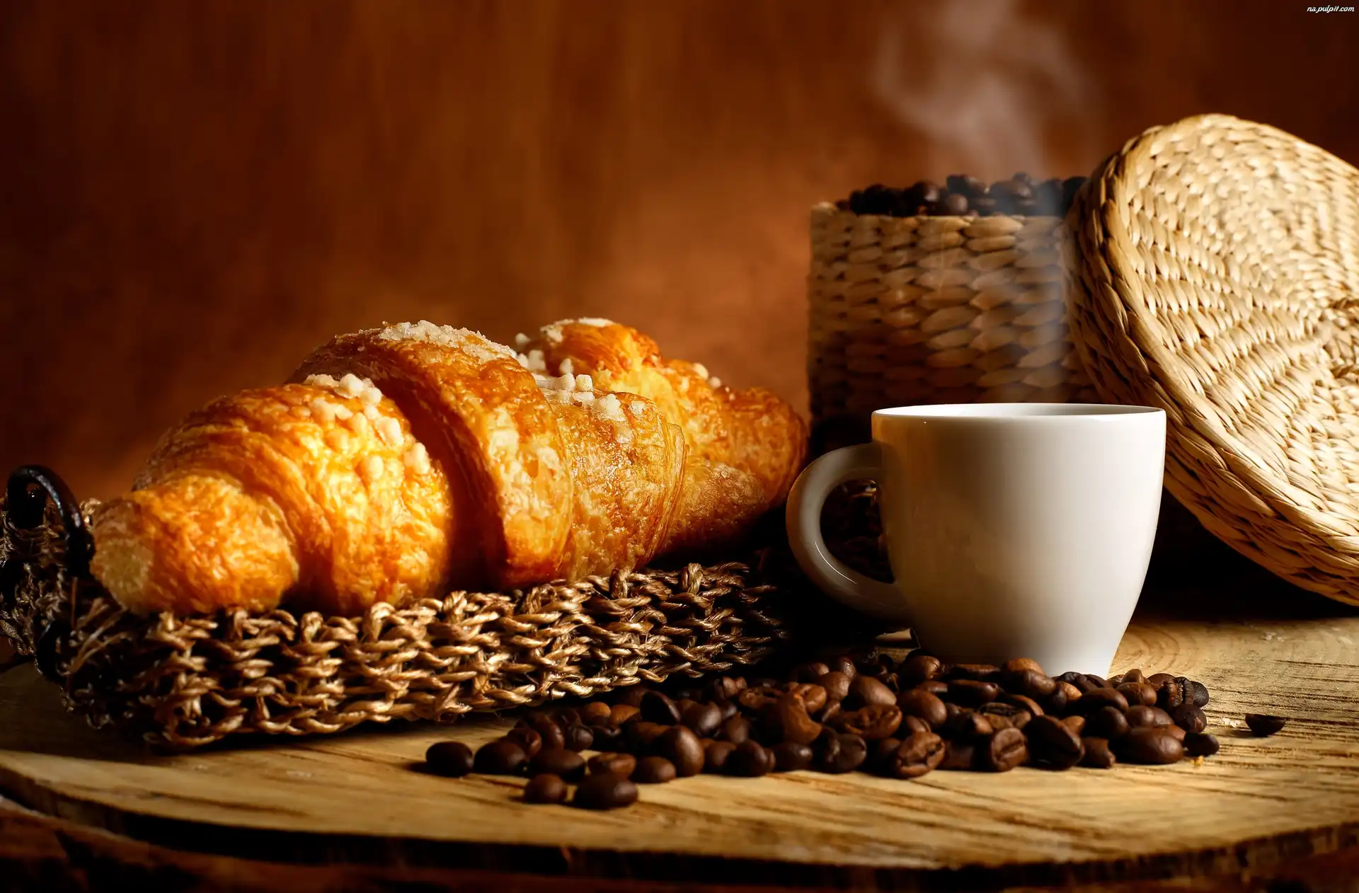 Rogal, Filiżanka, Kawa, Stół