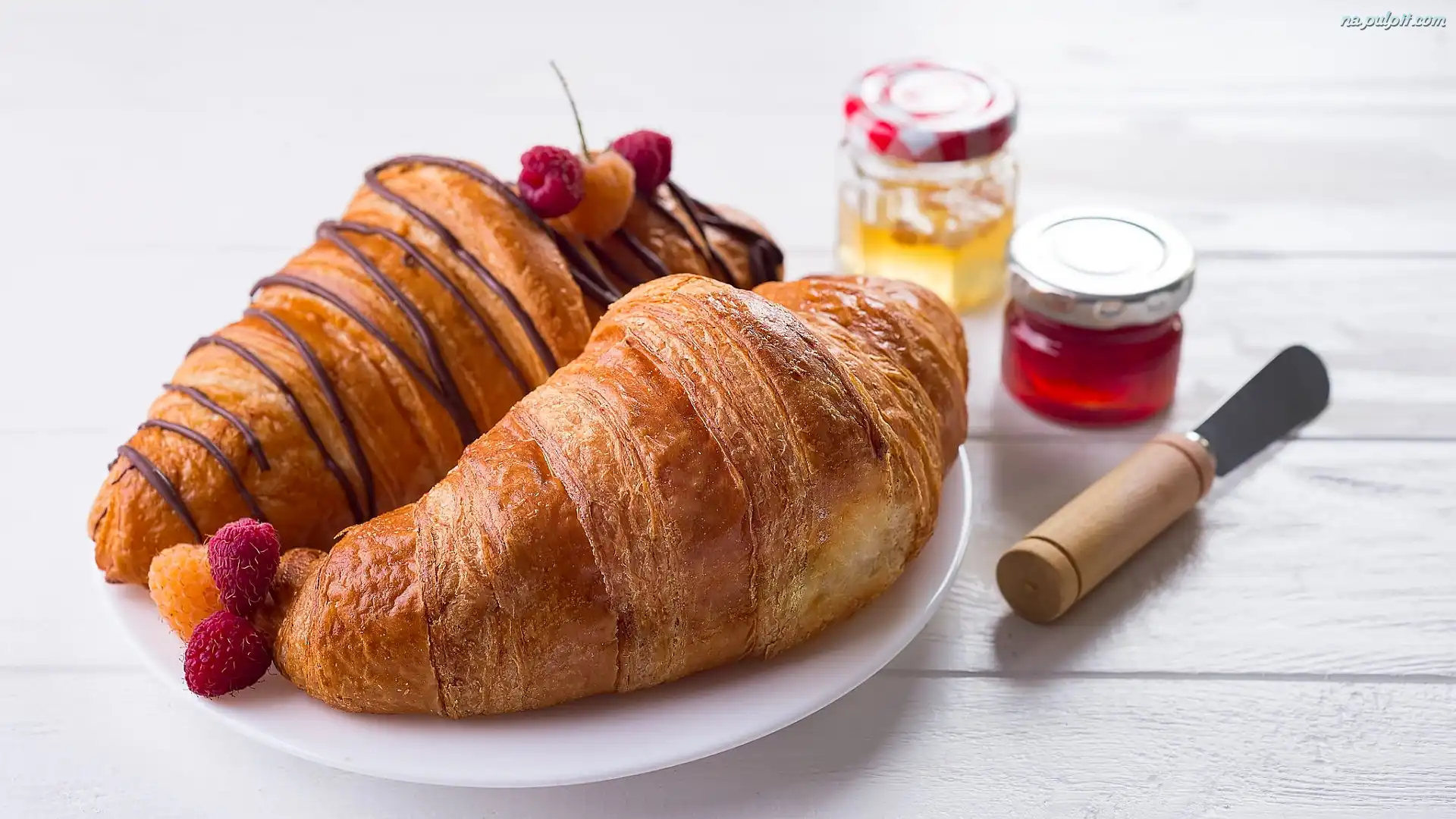 Talerzyk, Rogaliki, Nożyk, Czekoladowa, Polewa, Dwa, Maliny Na Pulpit