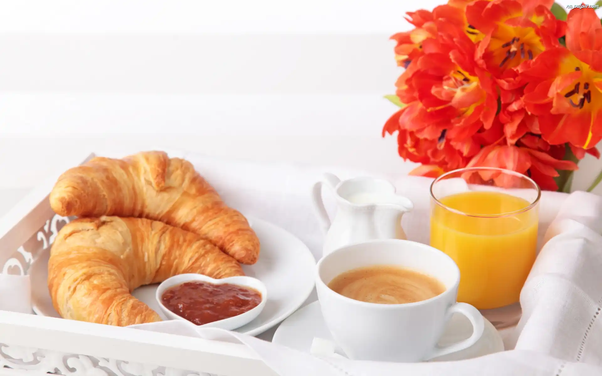 Rogaliki, Kwiaty, Śniadanko, Kawa, Świeże, Sok Na Pulpit