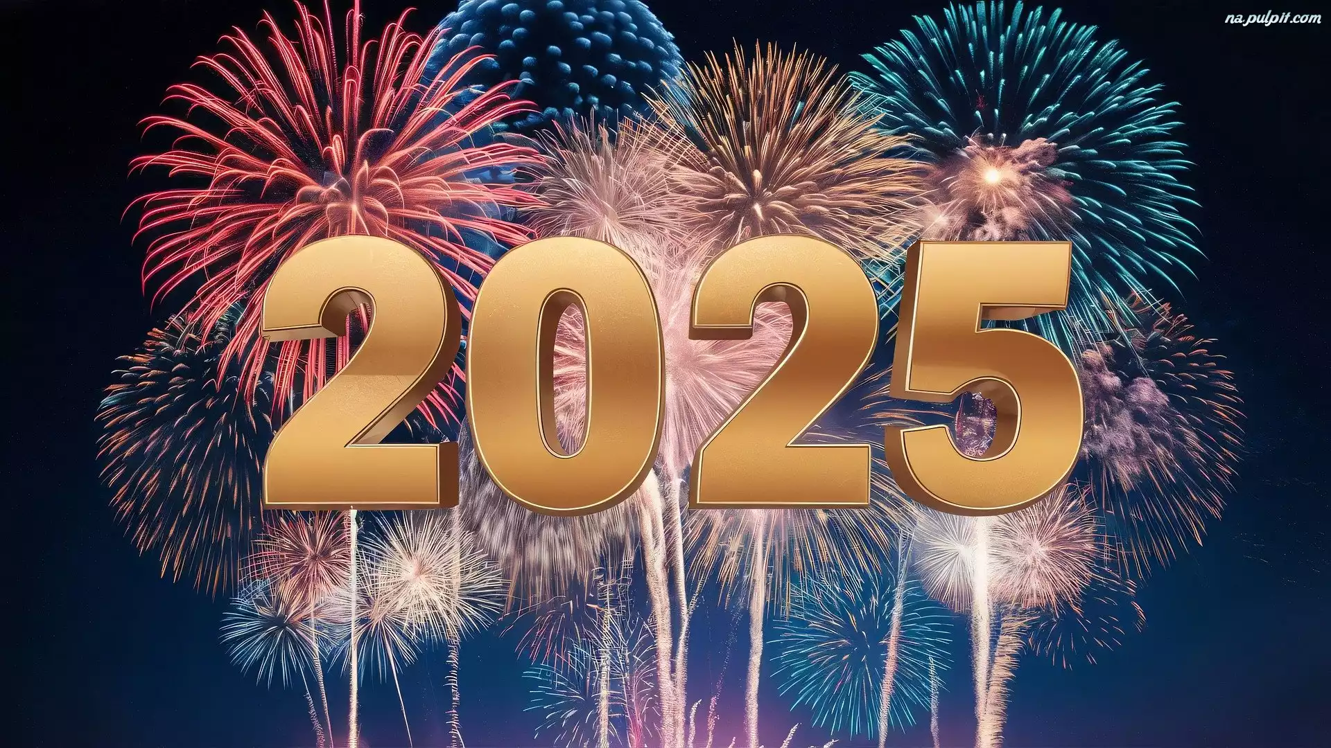 Cyfry, Sylwester, Nowy Rok, 2025, Fajerwerki, Grafika Na Pulpit