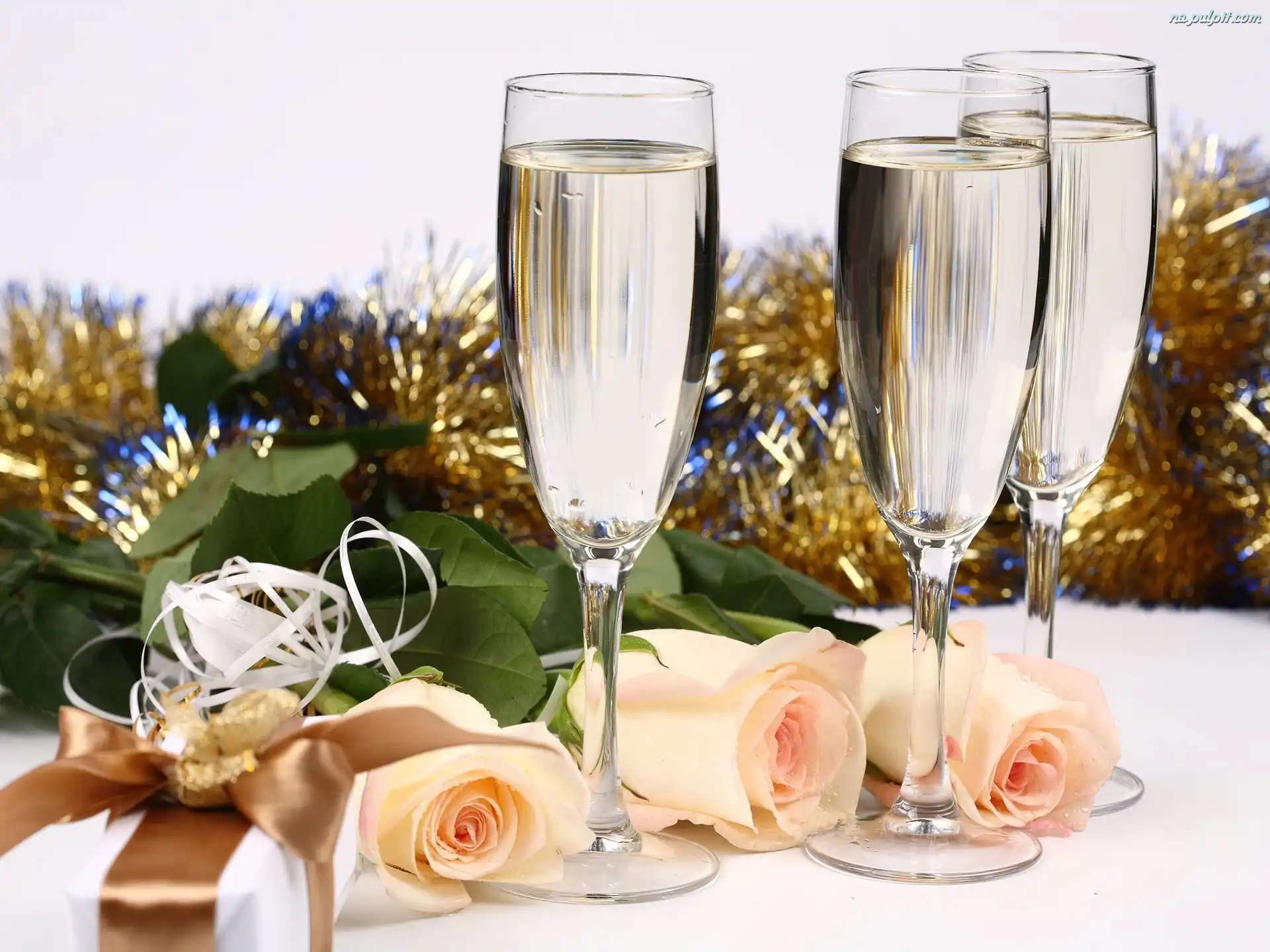Rok, Szampan, Kieliszki, Róże, Nowy Na Pulpit