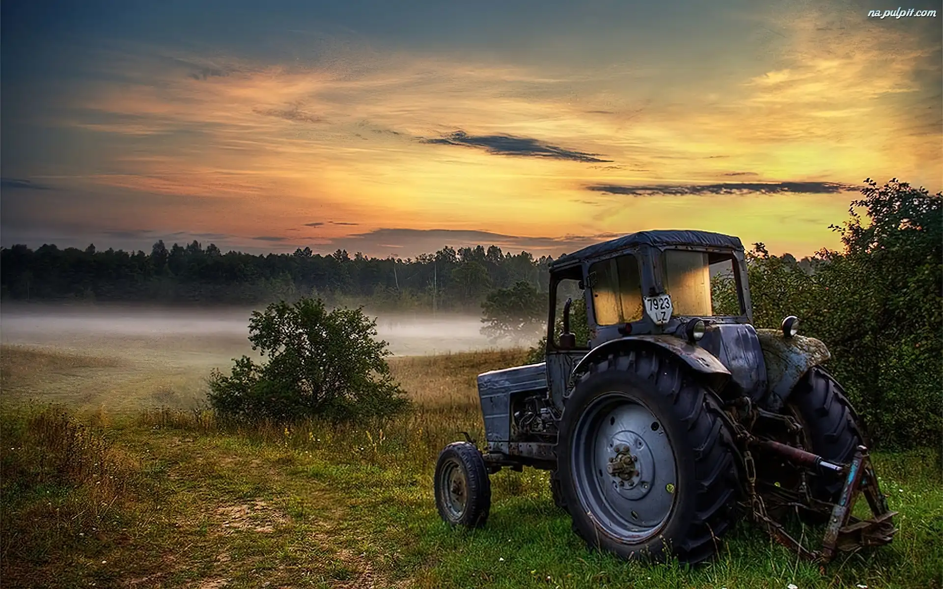 Rolniczy, Łąka, Mgła, Zachód, Ciągnik, Słońca Na Pulpit
