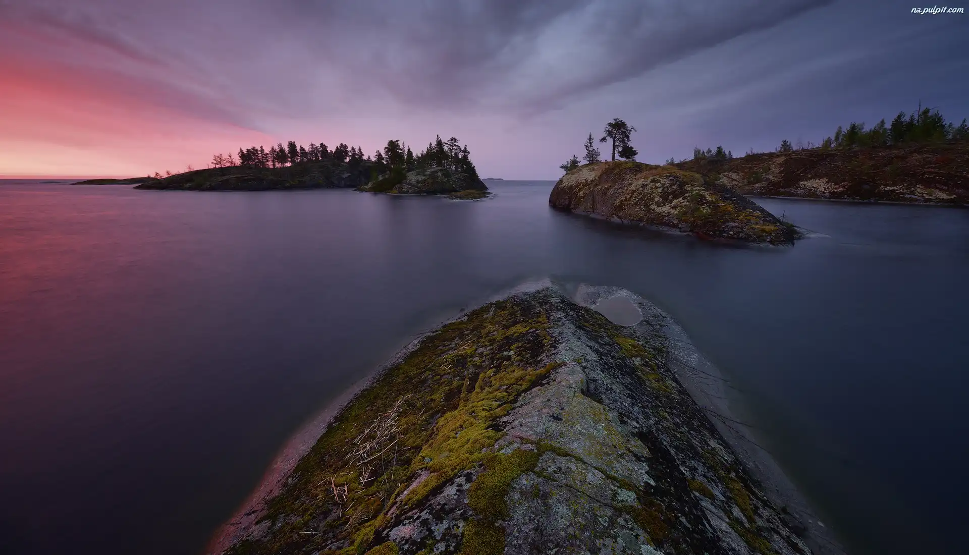 Rosja, Drzewa, Wysepki, Jezioro Ładoga, Karelia Na Pulpit