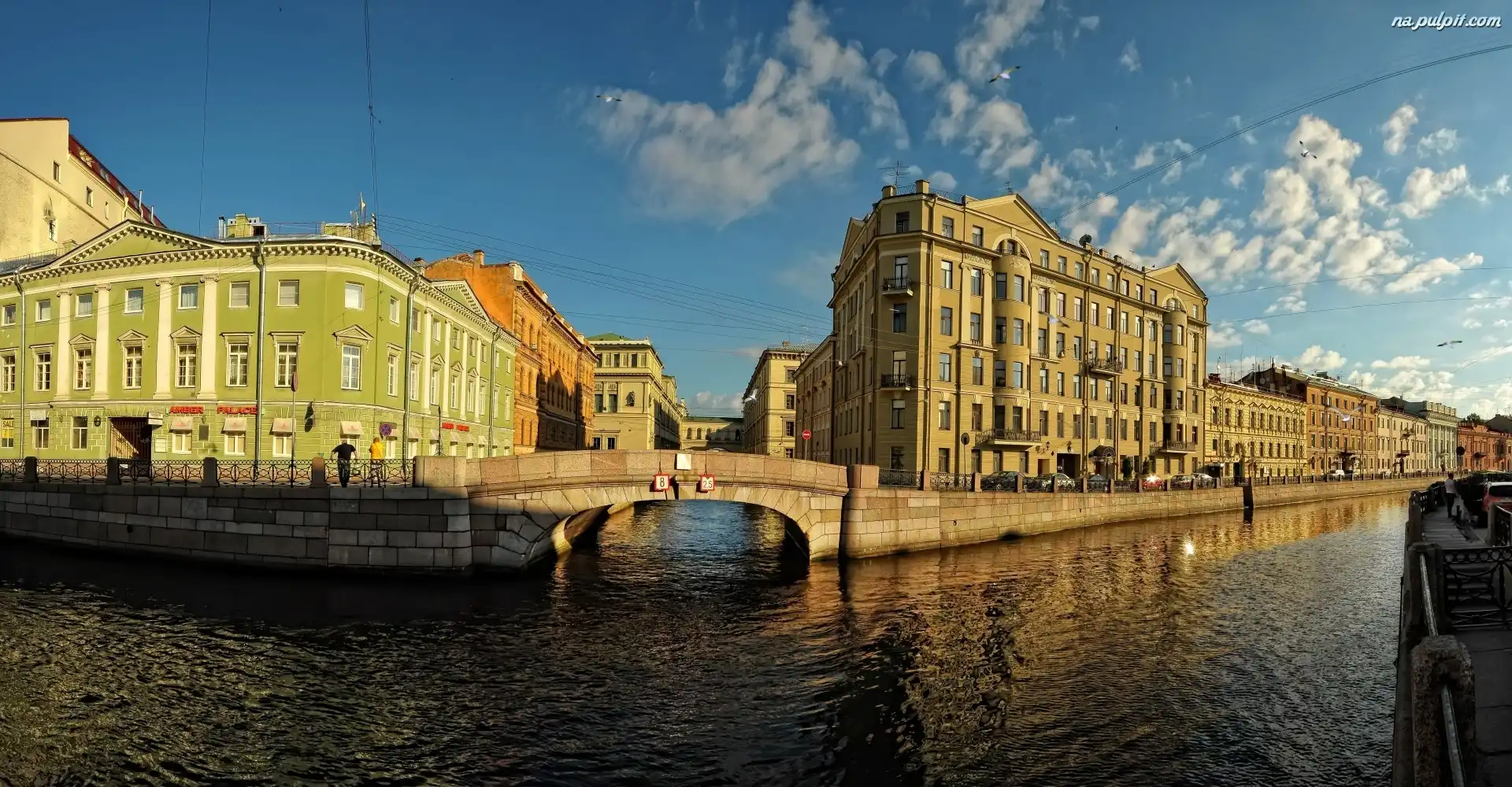 Rosja, Kanał, Most, Domy, St.Petersburg