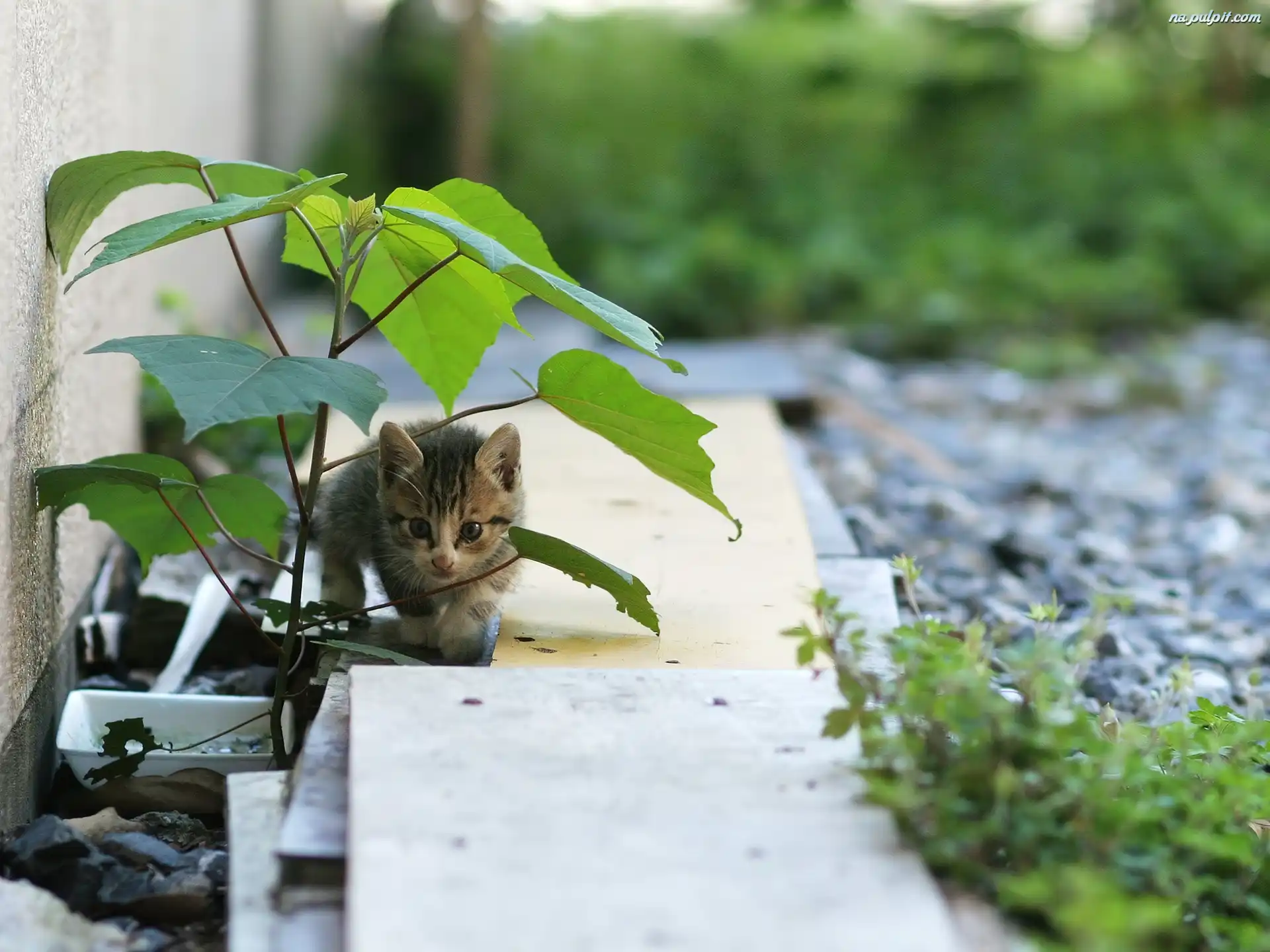 Roślina, Kociak, Szary, Mały, Zielona Na Pulpit