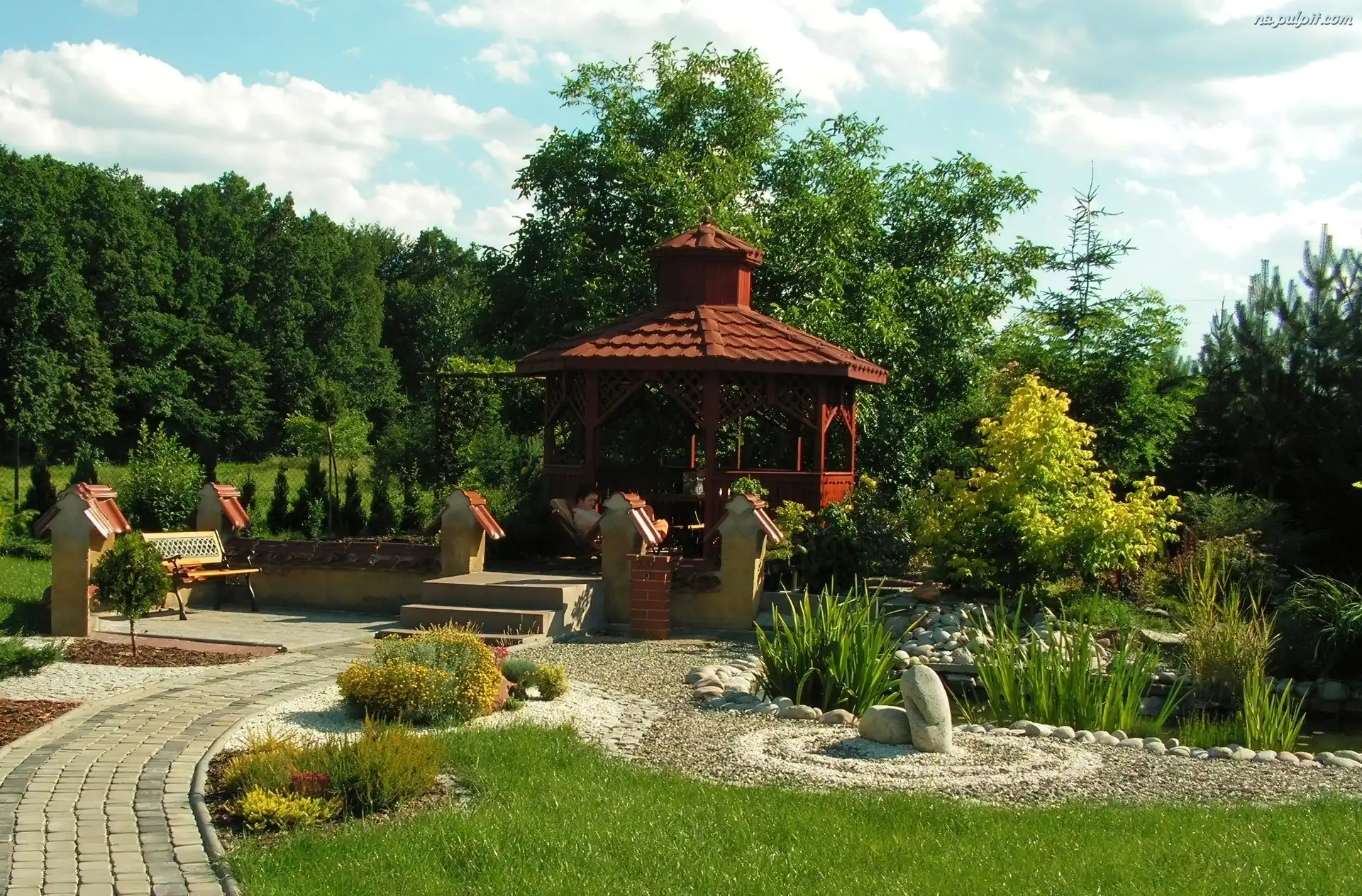 Roślinność, Ogrodowa, Altanka, Sadzawka