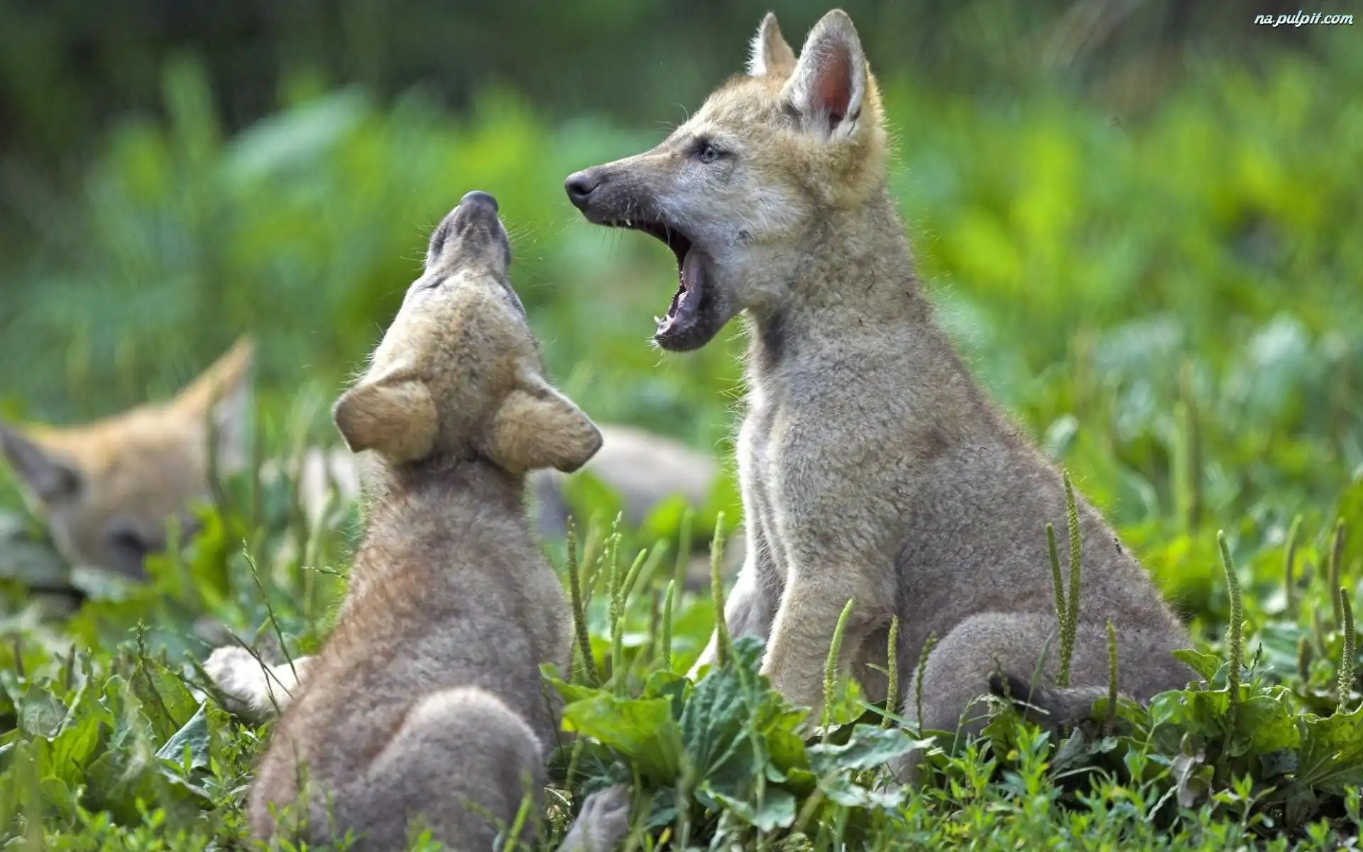 Roślinność, Małe, Dwa, Wilki Na Pulpit