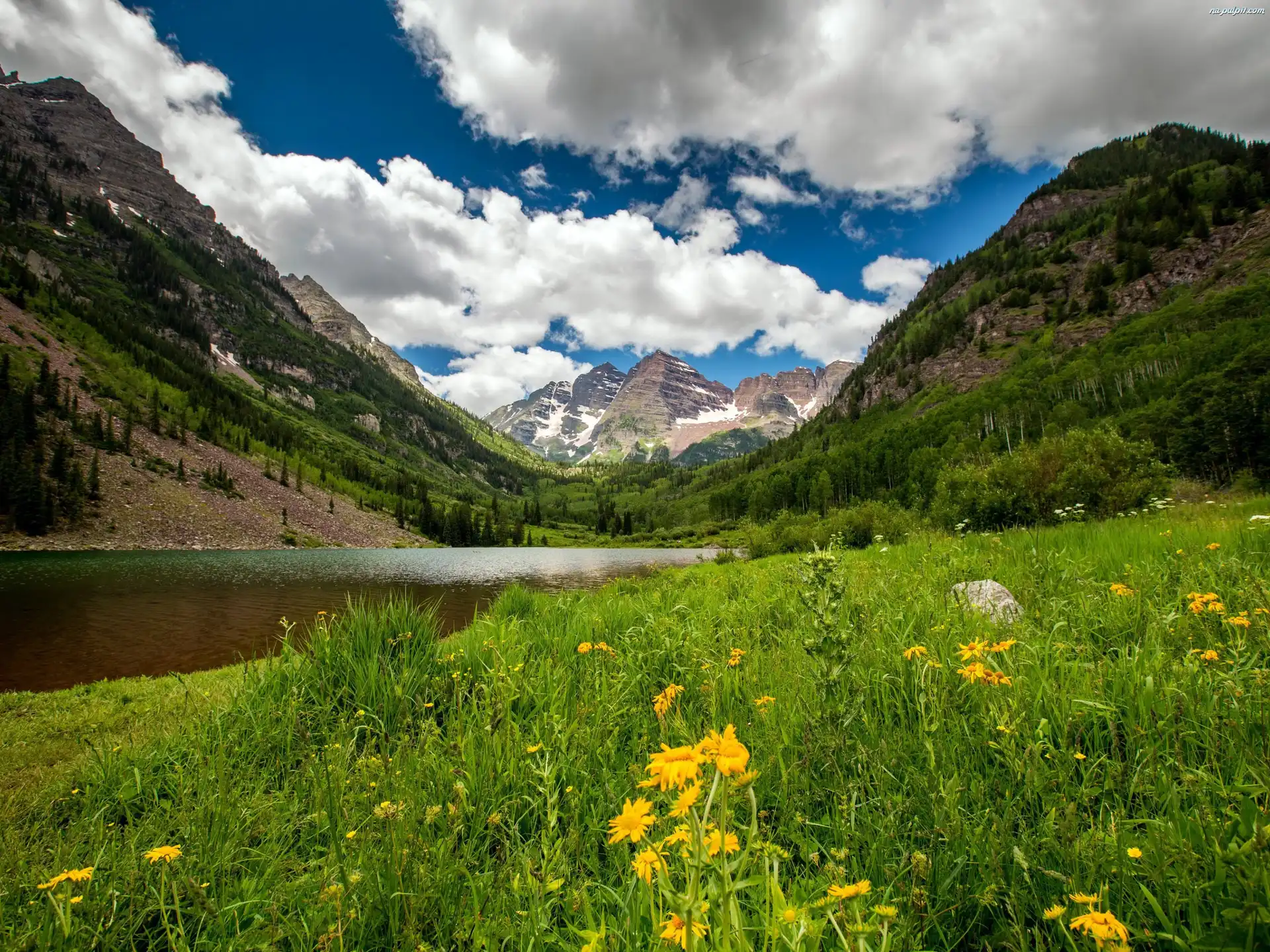 Roślinność, Rzeka, Góry, Chmury Na Pulpit