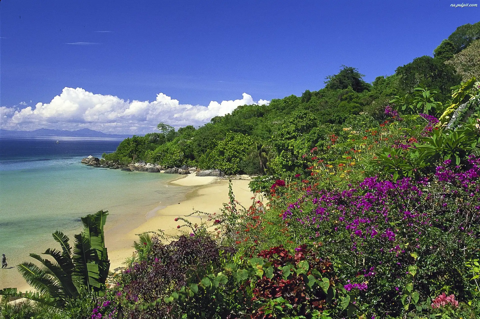 Roślinność, Zalesiony, Plaża, Morze, Brzeg