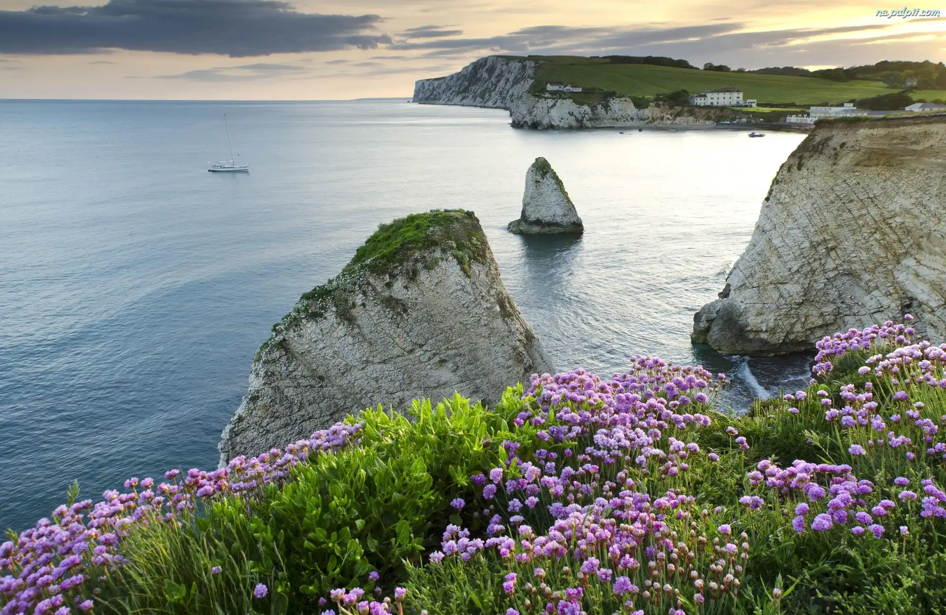 Roślinność, Skały, Morze, Domki Na Pulpit