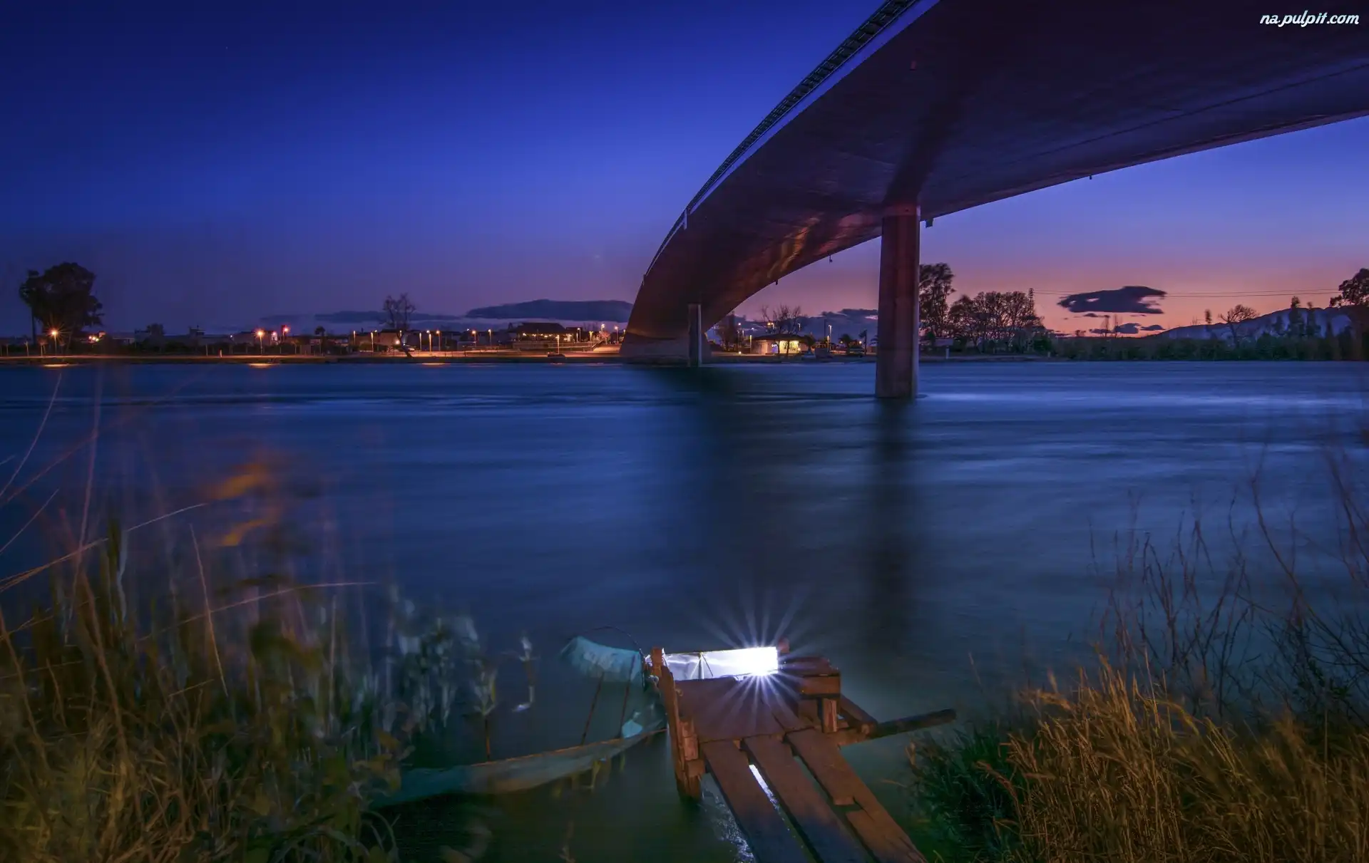 Roślinność, Neony, Miasto, Most, Woda