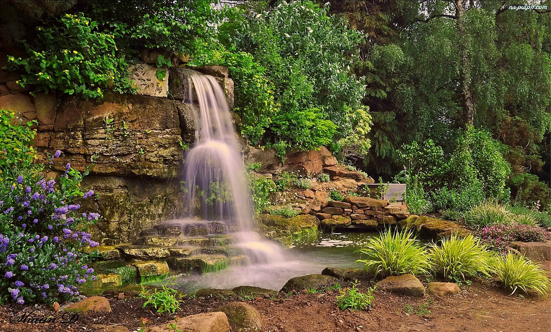 Roślinność, Wodospad, Park, Skały Na Pulpit