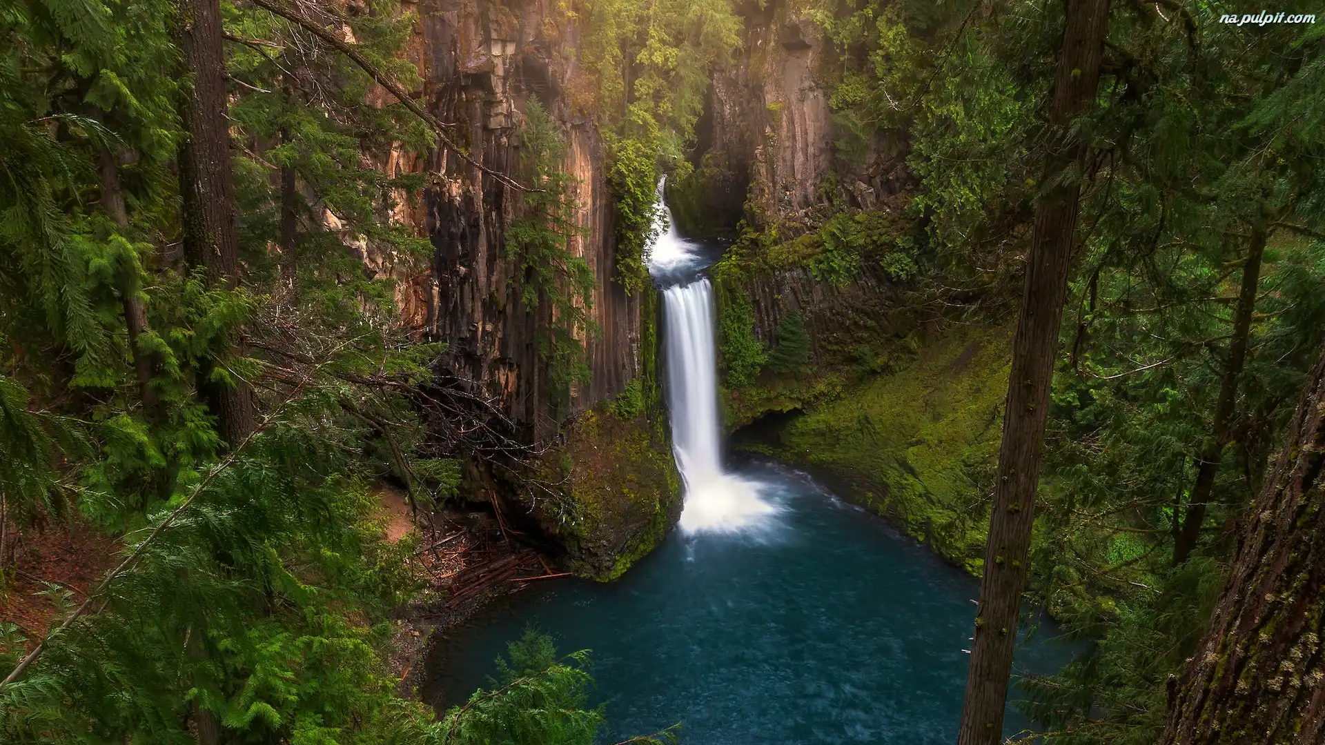 Roślinność, Stan Oregon, Skały, Wodospad, Park Narodowy Jeziora Kraterowego, Stany Zjednoczone, Toketee Falls Na Pulpit |