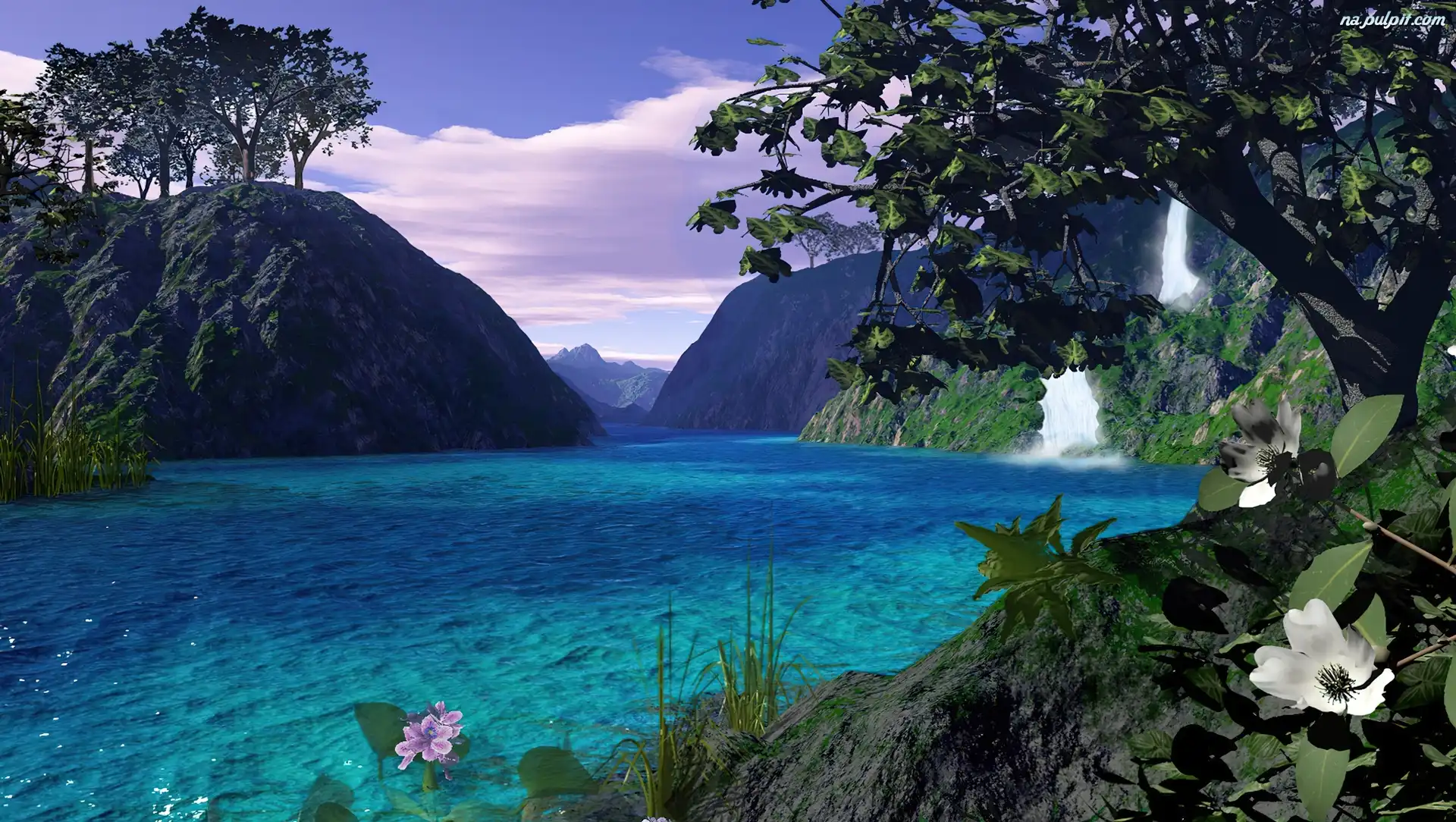 Roślinność, Wodospad, Jezioro, Turkusowe, Góry Na Pulpit
