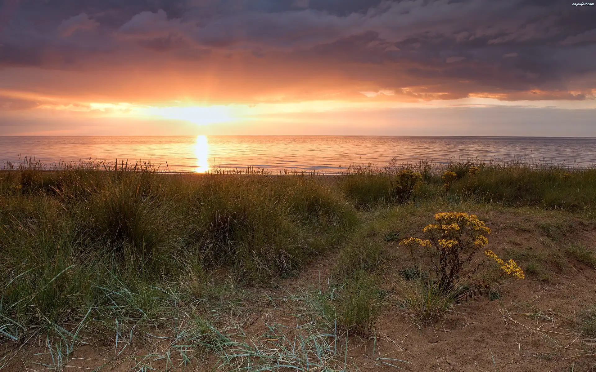 Roślinność, Słońca, Zachód, Plaża