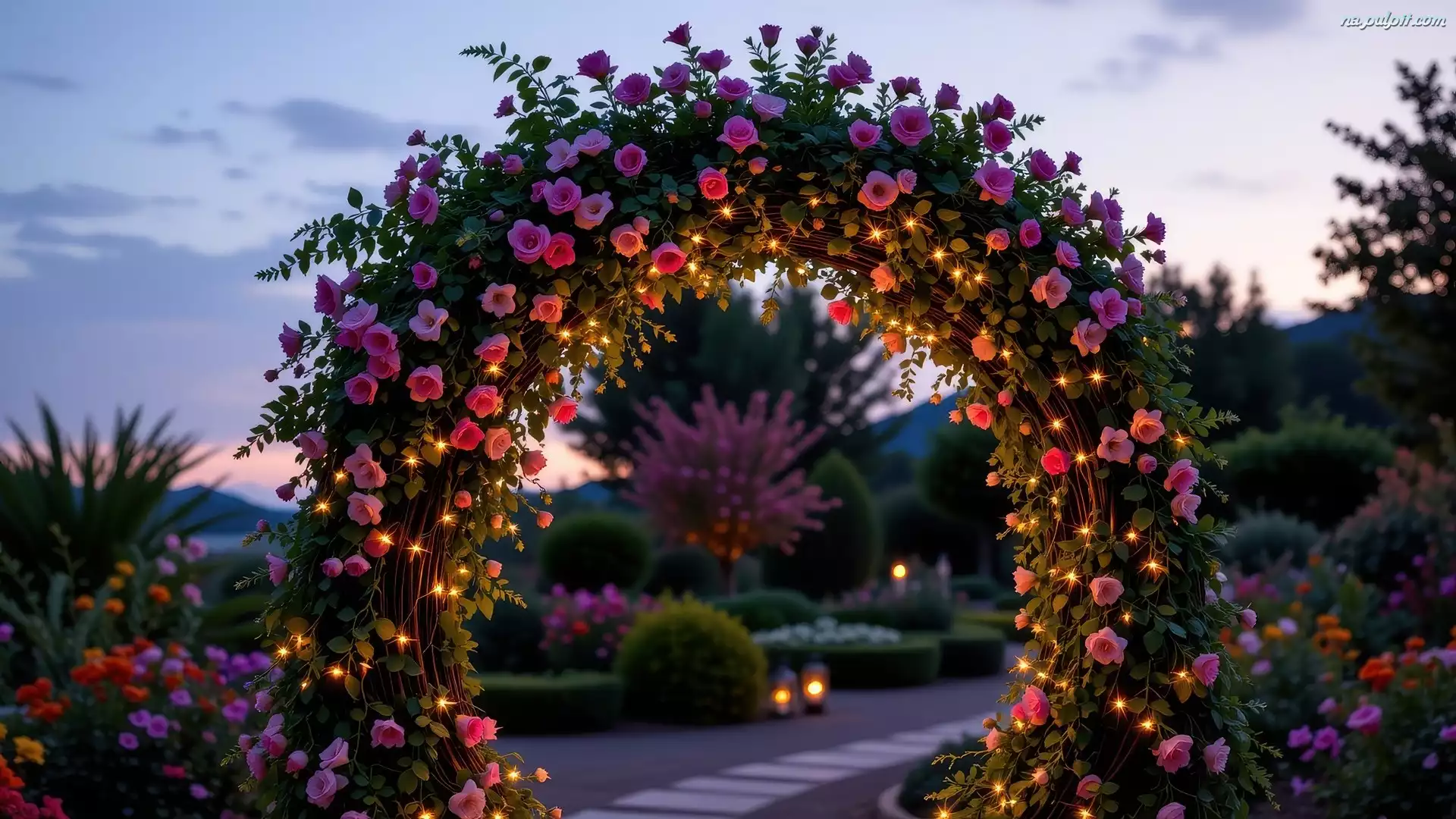 Lampiony, Kwiatowy, Alejka, Ogród, Kwiaty, Różowe, Łuk, Rośliny Na Pulpit