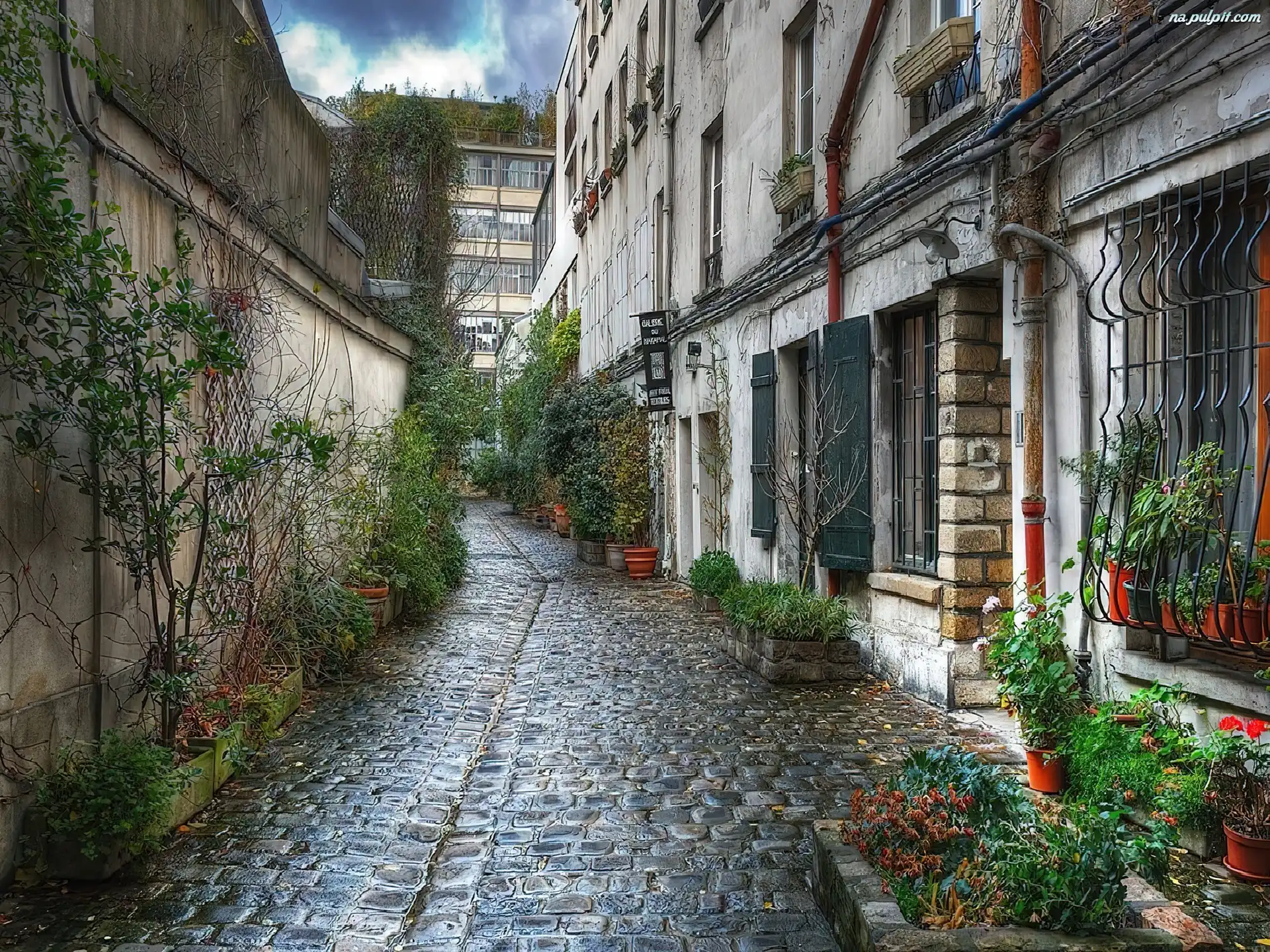 Rośliny, Aleja, Brukowana, Kamienica Na Pulpit