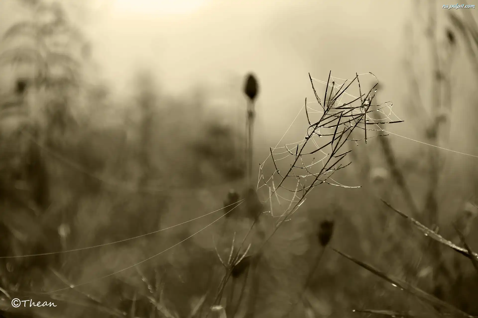 Makro, Rośliny, Krople, Łąka, Zamglona, Mokre, Pajęczyny Na Pulpit